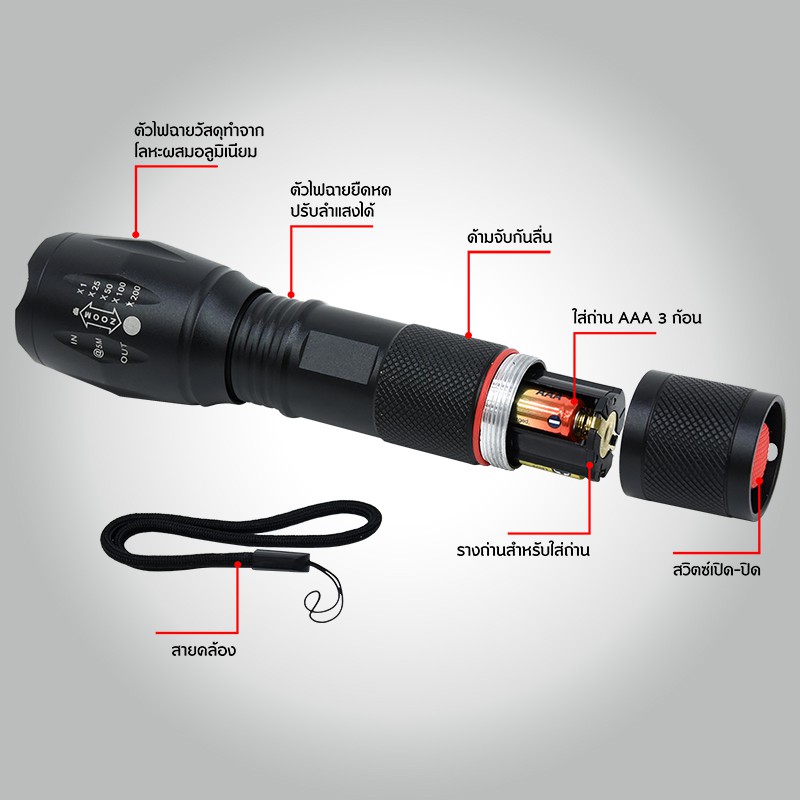 GALAXY ไฟฉายความสว่างสูง 5 โหมด Flashlight รุ่น WH-4076
