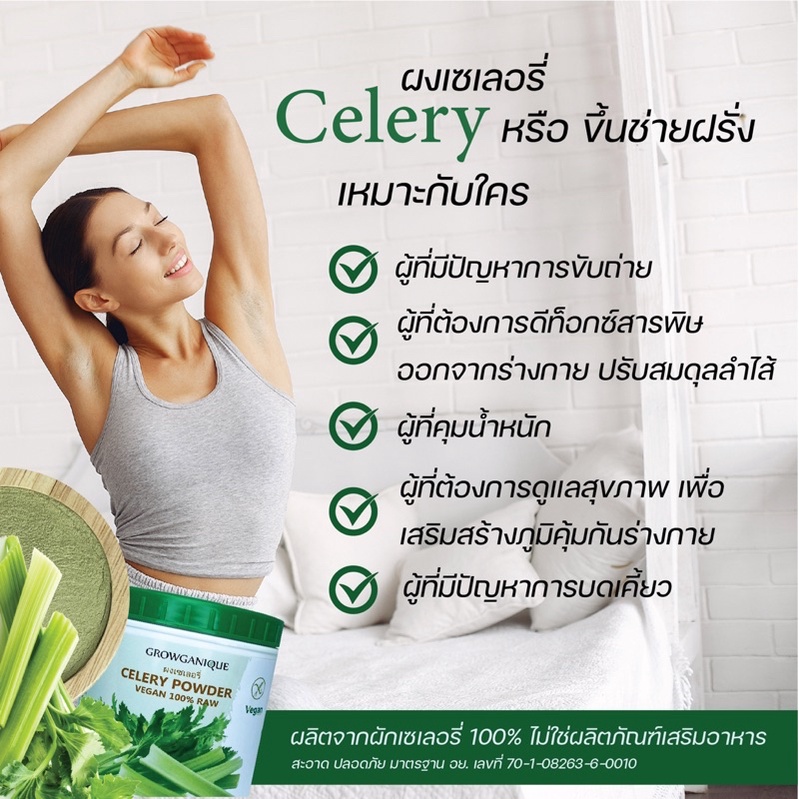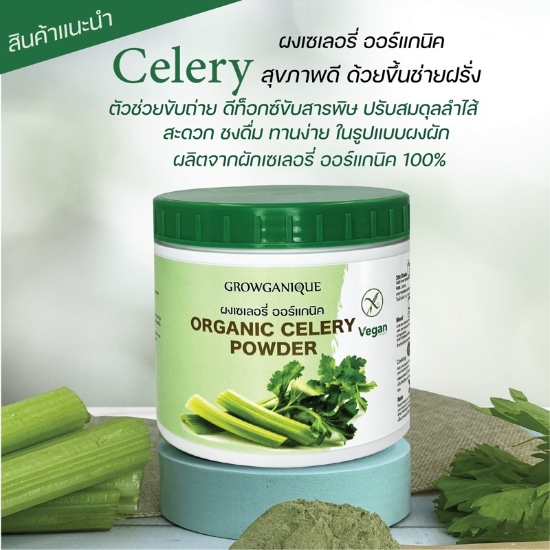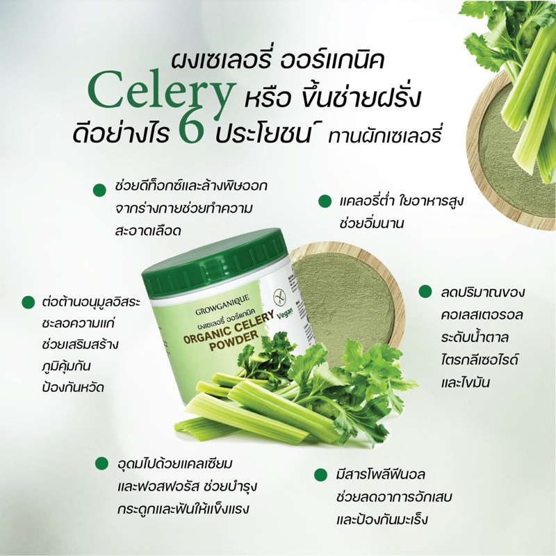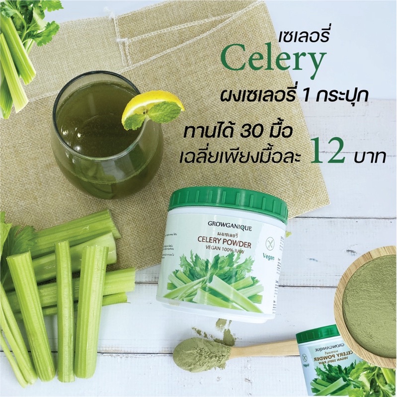 GROWGANIQUE ผงเซเลอรี่ ออร์แกนิค 100% ดีท็อกซ์สารพิษออกจากร่างกาย ขับโซเดียมในร่างกาย Celery powder