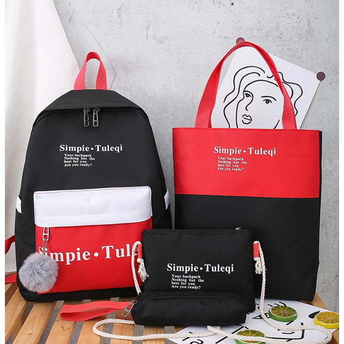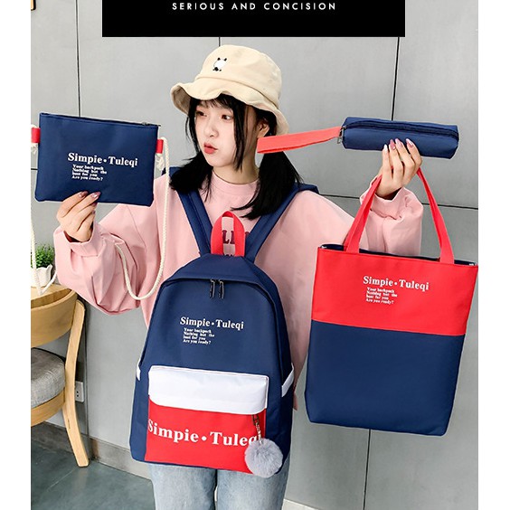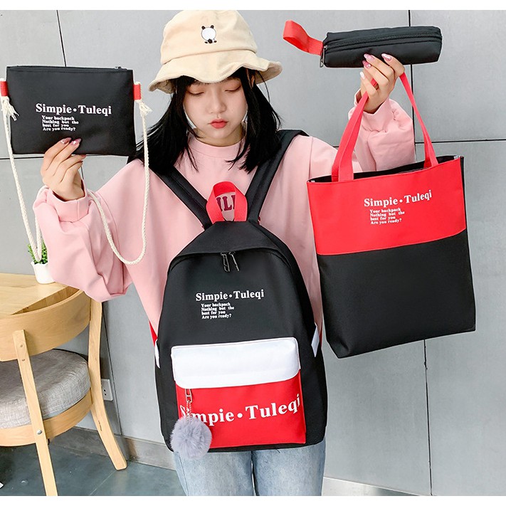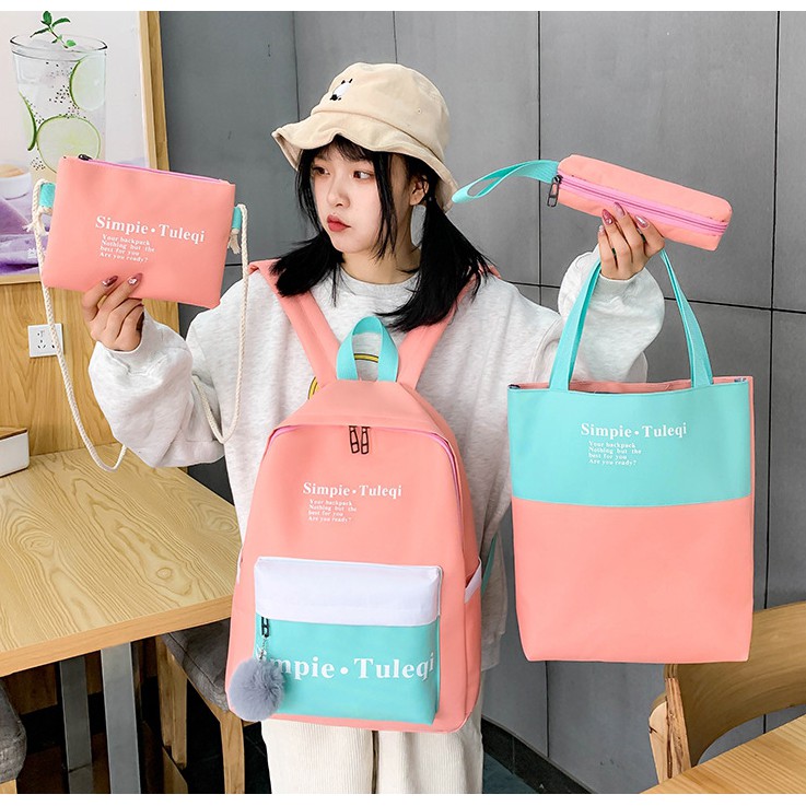 กระเป๋าเซต 4 ใบ Simpie Tuleqi กระเป๋าเป้ ชุดเซ็ตกระเป๋า 4 ใบ สินค้าพร้อมส่ง