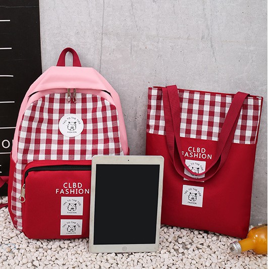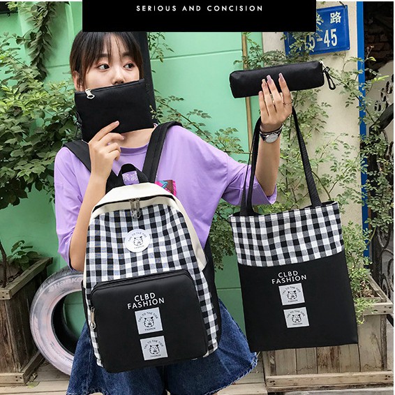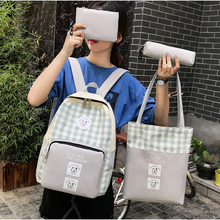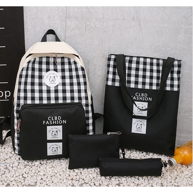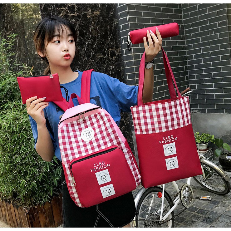 มาใหม่ กระเป๋าเป้แฟชั่น เซ็ท 4 ใบ ลายสก๊อต กระเป๋าเซต สินค้าพร้อมส่ง