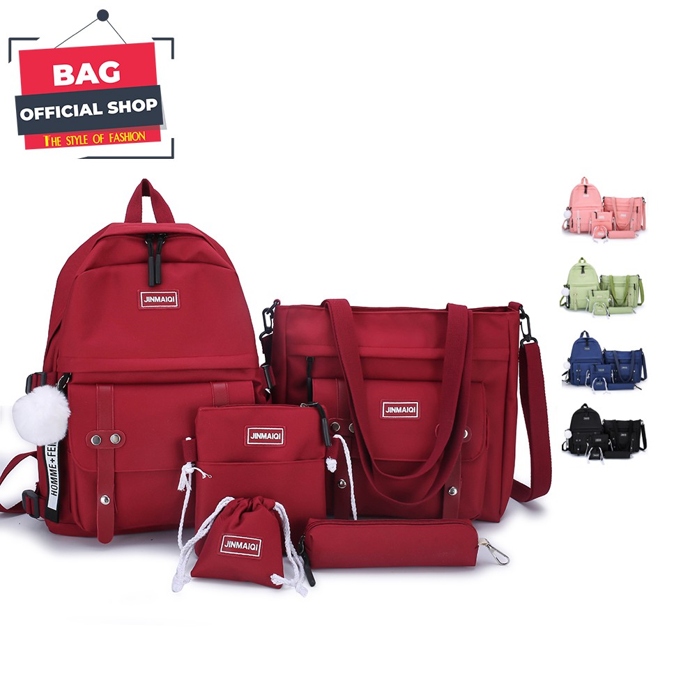กระเป๋าเซ็ต 5 ใบคุ้ม กระเป๋าเป้สะพายใบใหญ่ใบเล็กสะพายข้าง ใส่ดินสอ สินค้าพร้อมส่ง