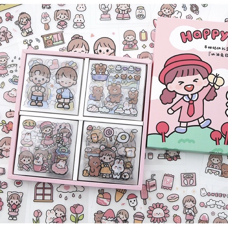 【ซื้อ 1 แถม 1】สติ๊กเกอร์ไดคัท HAPPY DAY สติ๊กเกอร์ตกแต่งชุดของขวัญ สติ๊กเกอร์DIY 🌟แบ่งขาย ไม่มีกล่องนะคะ🌟