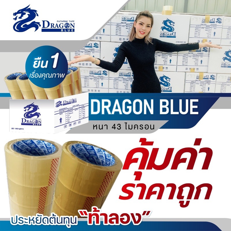 เทปopp 2 นิ้ว 45 ไมครอน ยี่ห้อ DRAGON BLUE (เจ้าเดียวในไทย) เป็นม้วน
