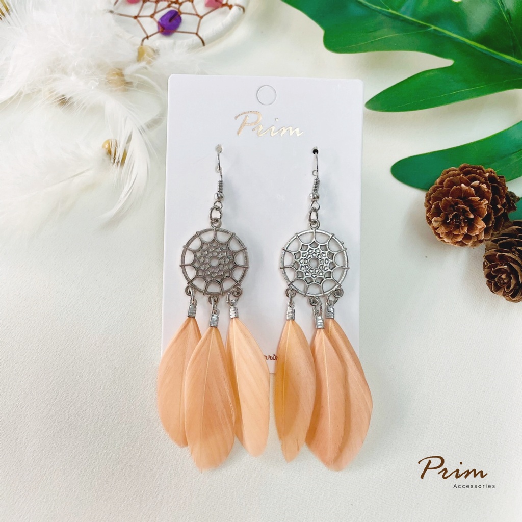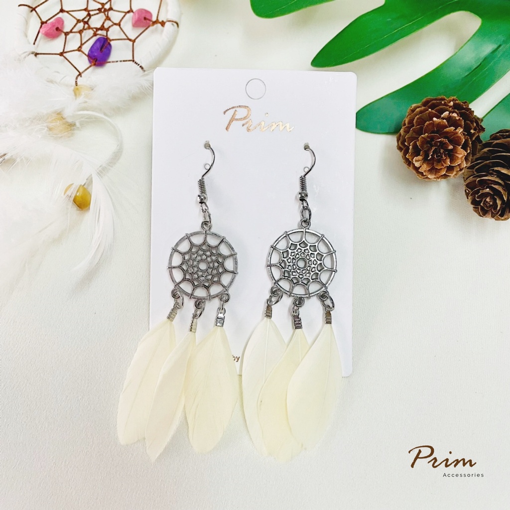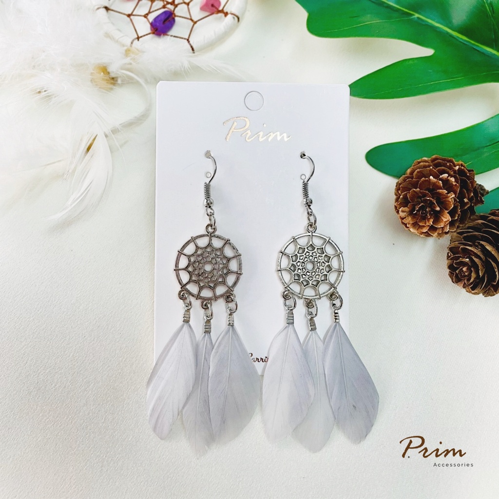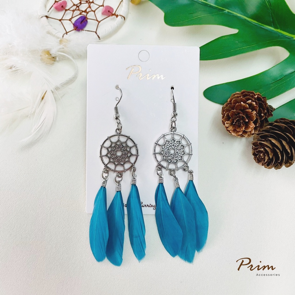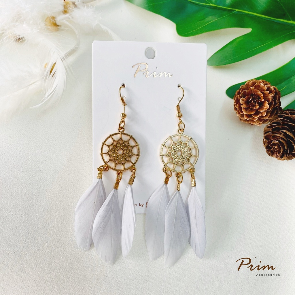 ต่างหูขนนก ลายตาข่ายดักฝัน Dream Catcher สไตล์โบฮีเมียน