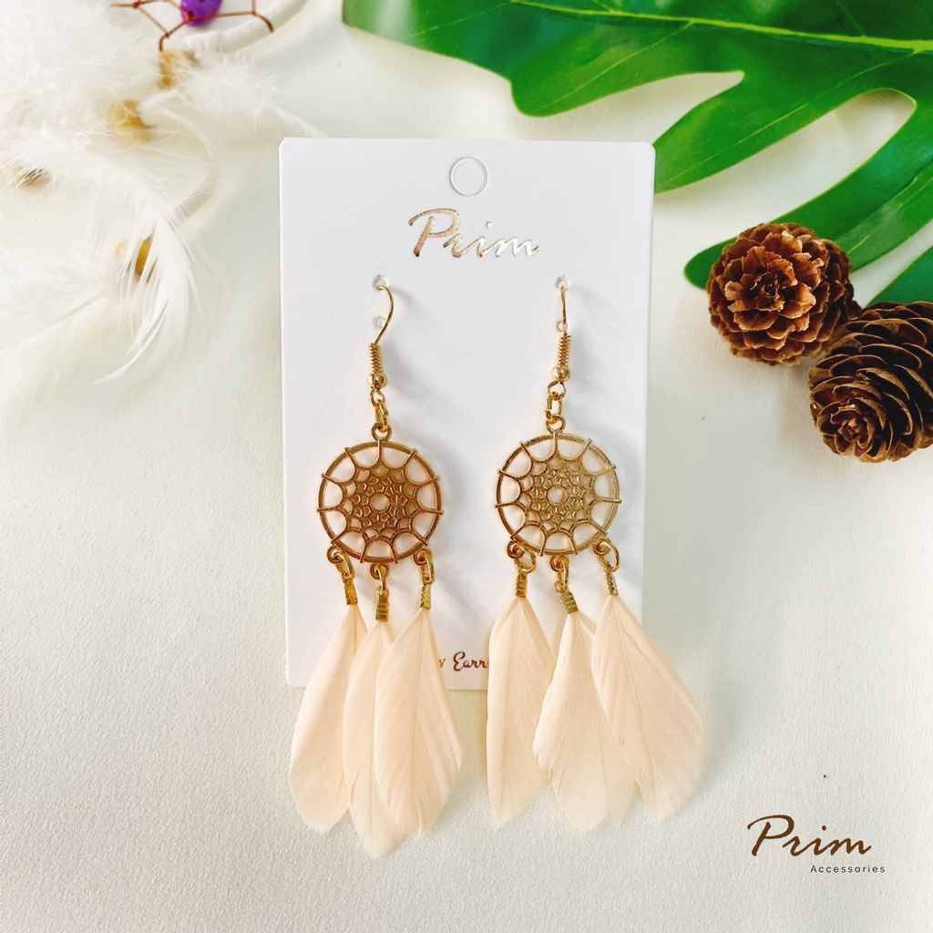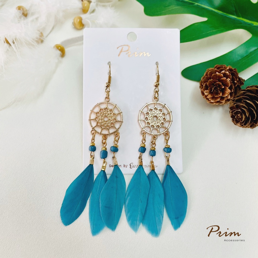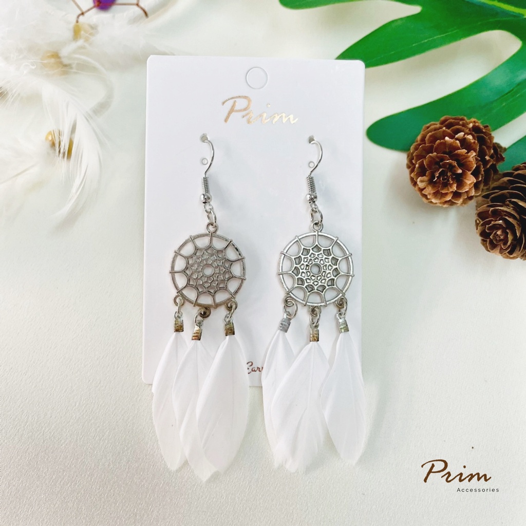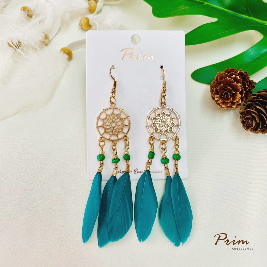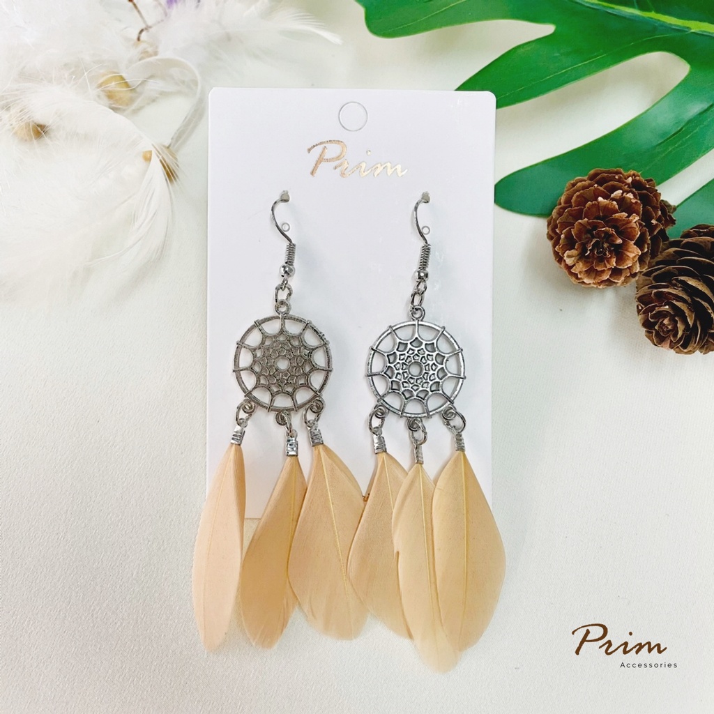 ต่างหูขนนก ลายตาข่ายดักฝัน Dream Catcher สไตล์โบฮีเมียน