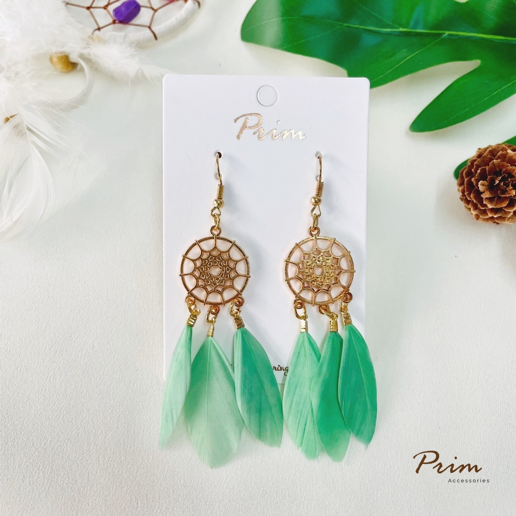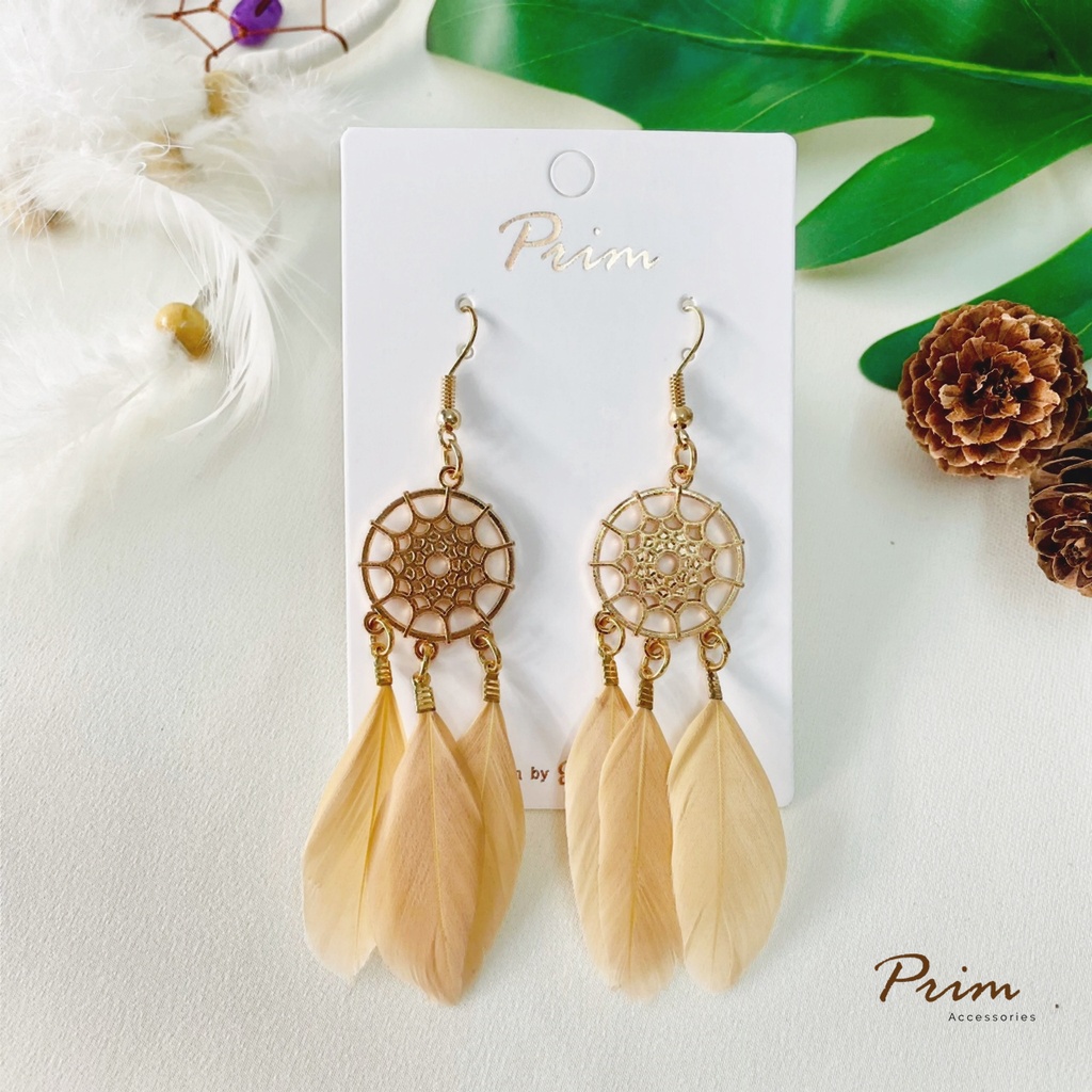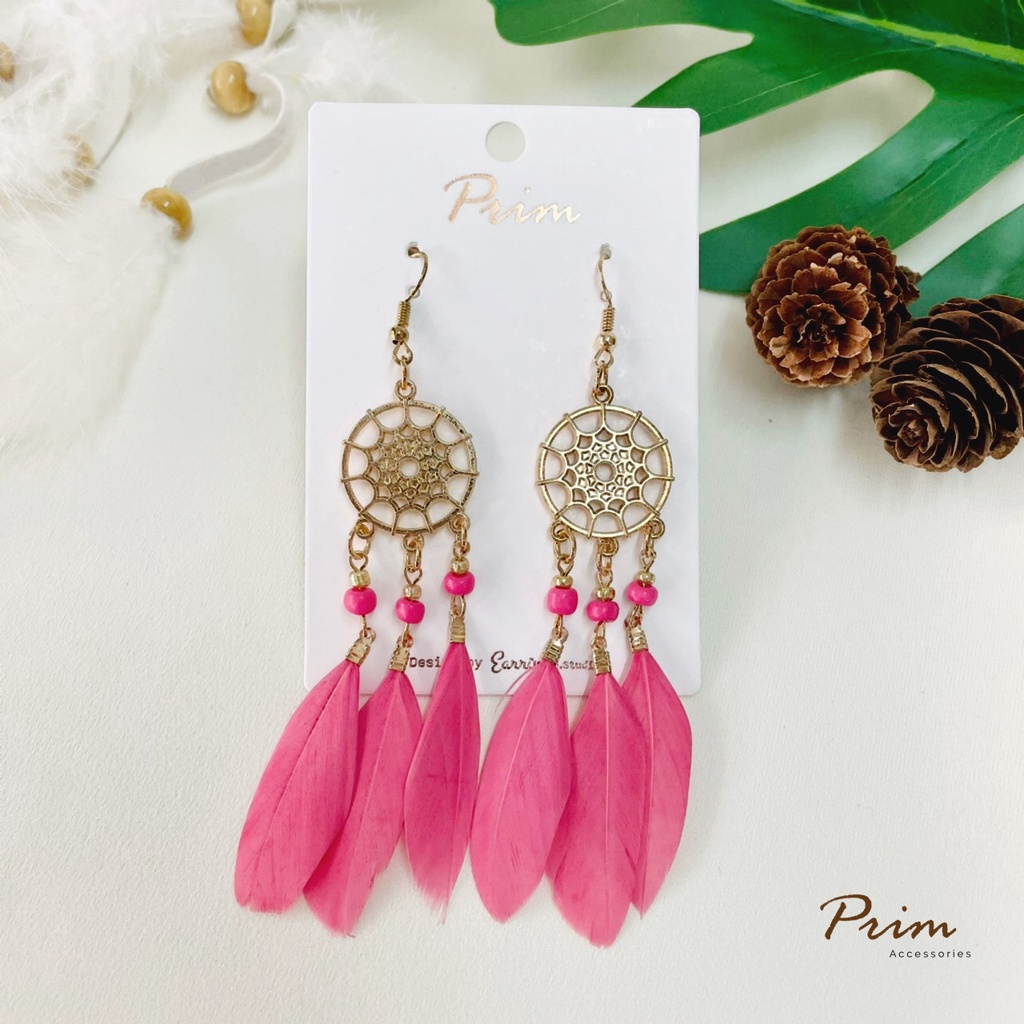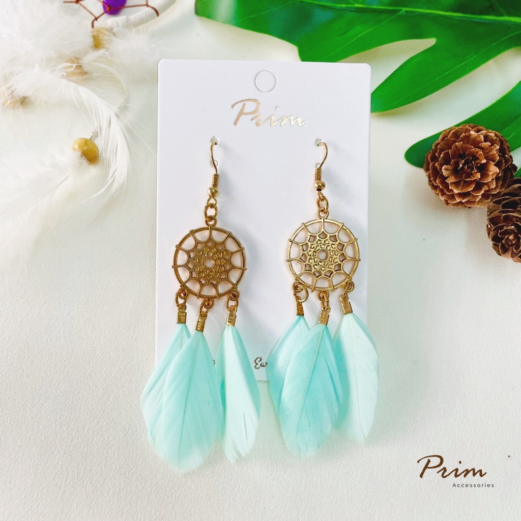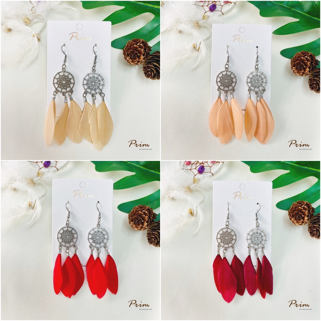 ต่างหูขนนก ลายตาข่ายดักฝัน Dream Catcher สไตล์โบฮีเมียน