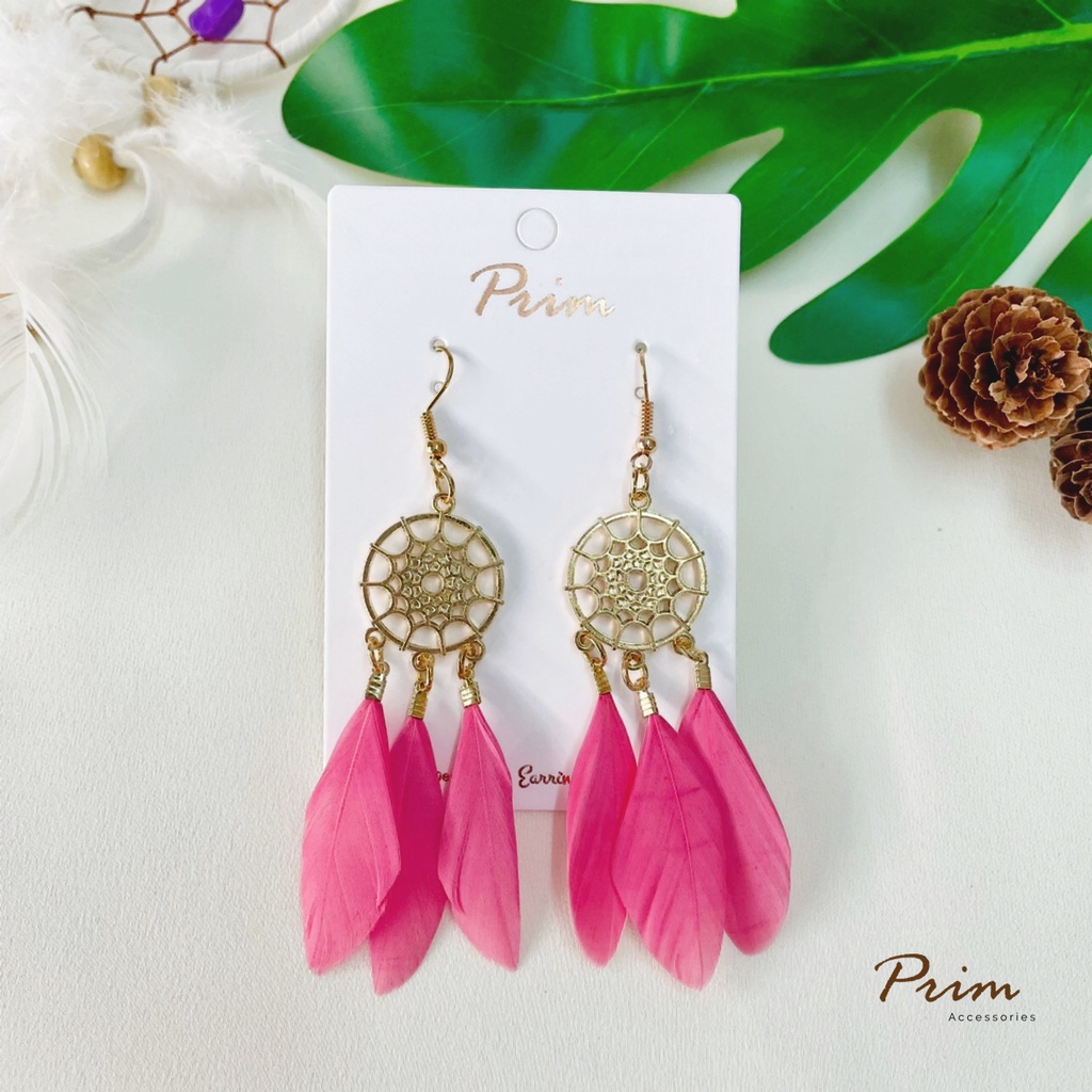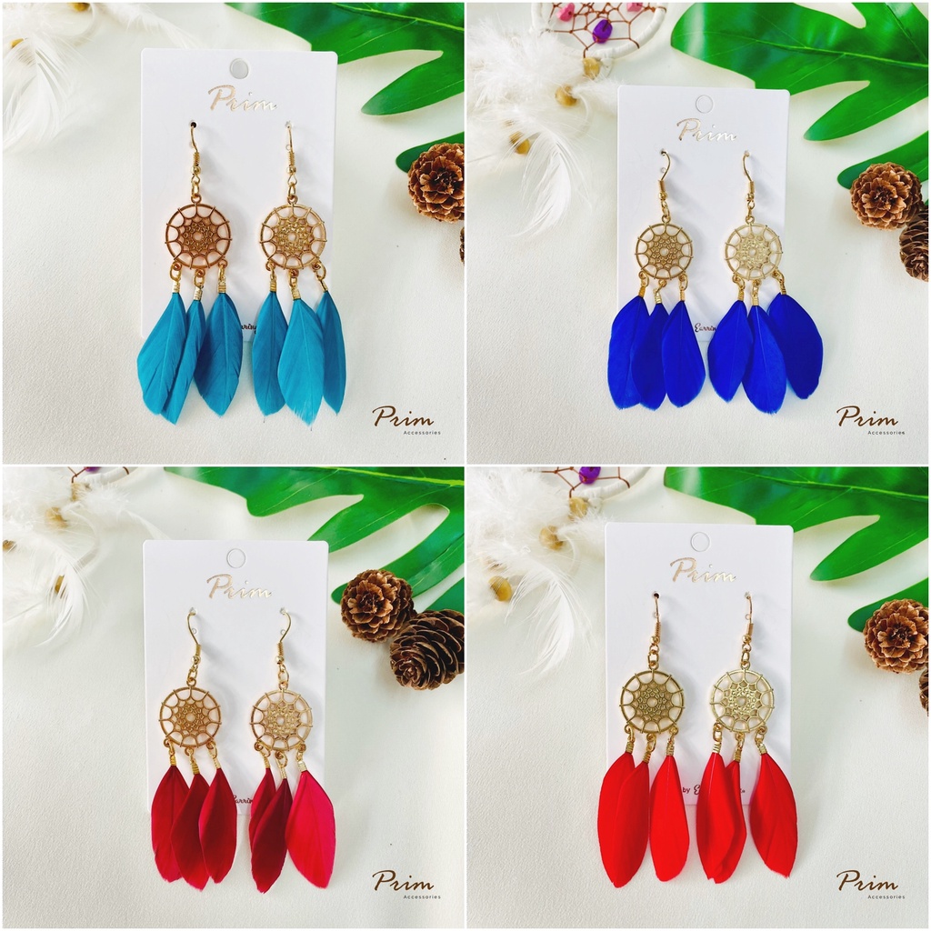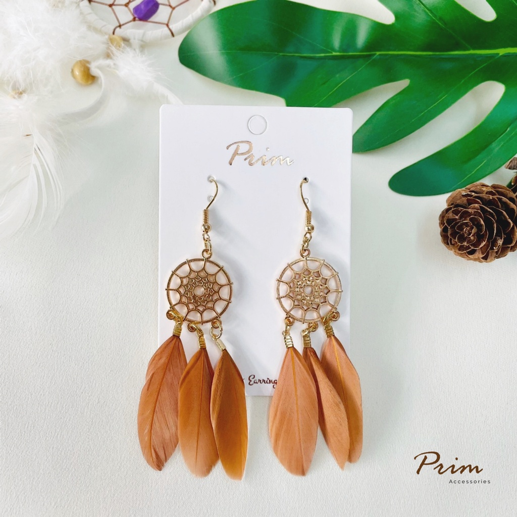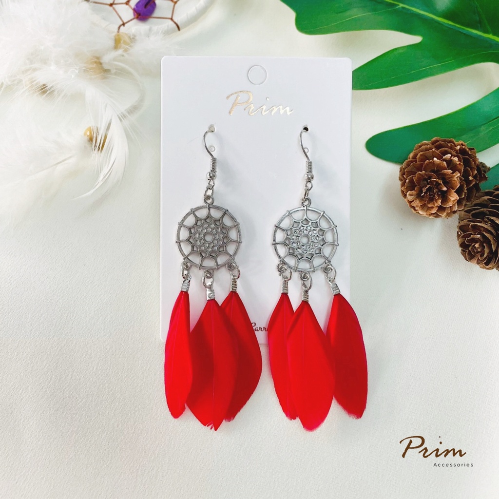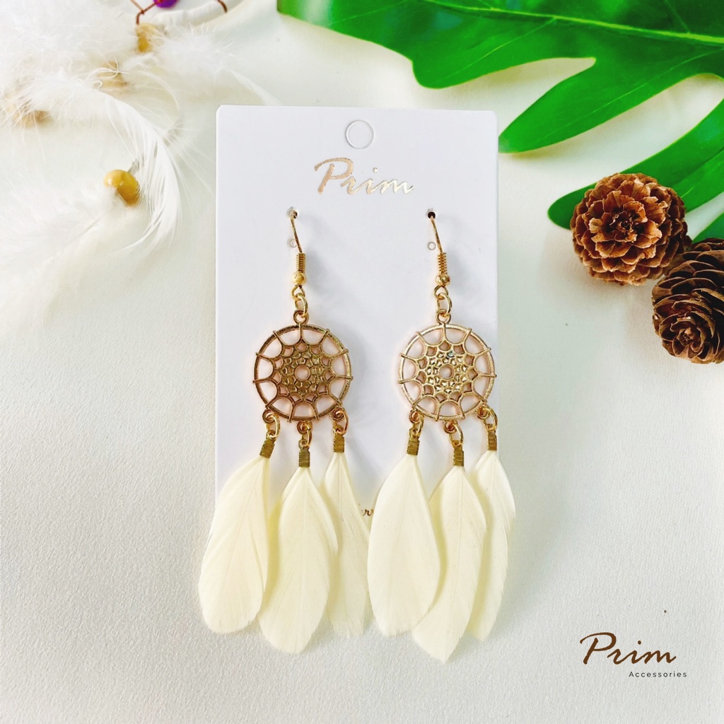 ต่างหูขนนก ลายตาข่ายดักฝัน Dream Catcher สไตล์โบฮีเมียน
