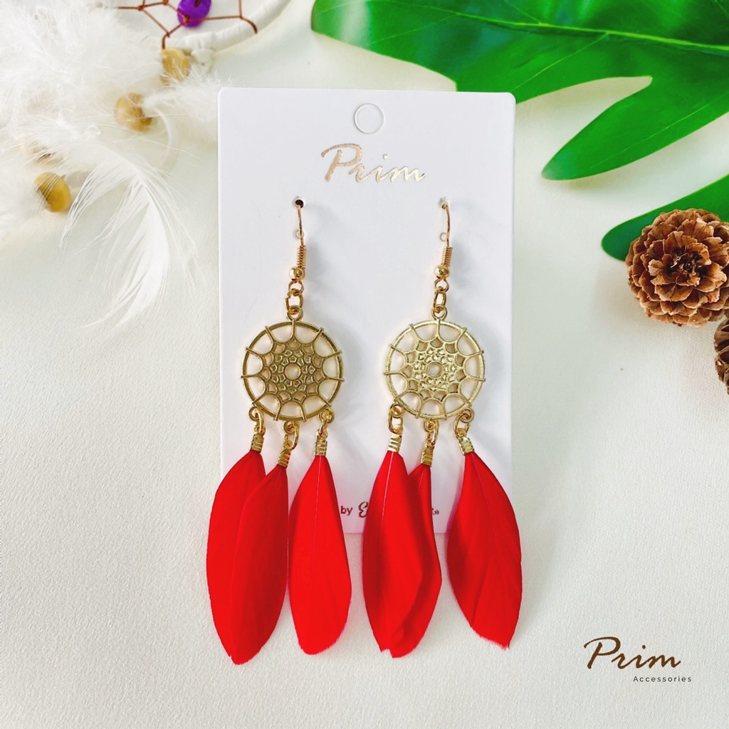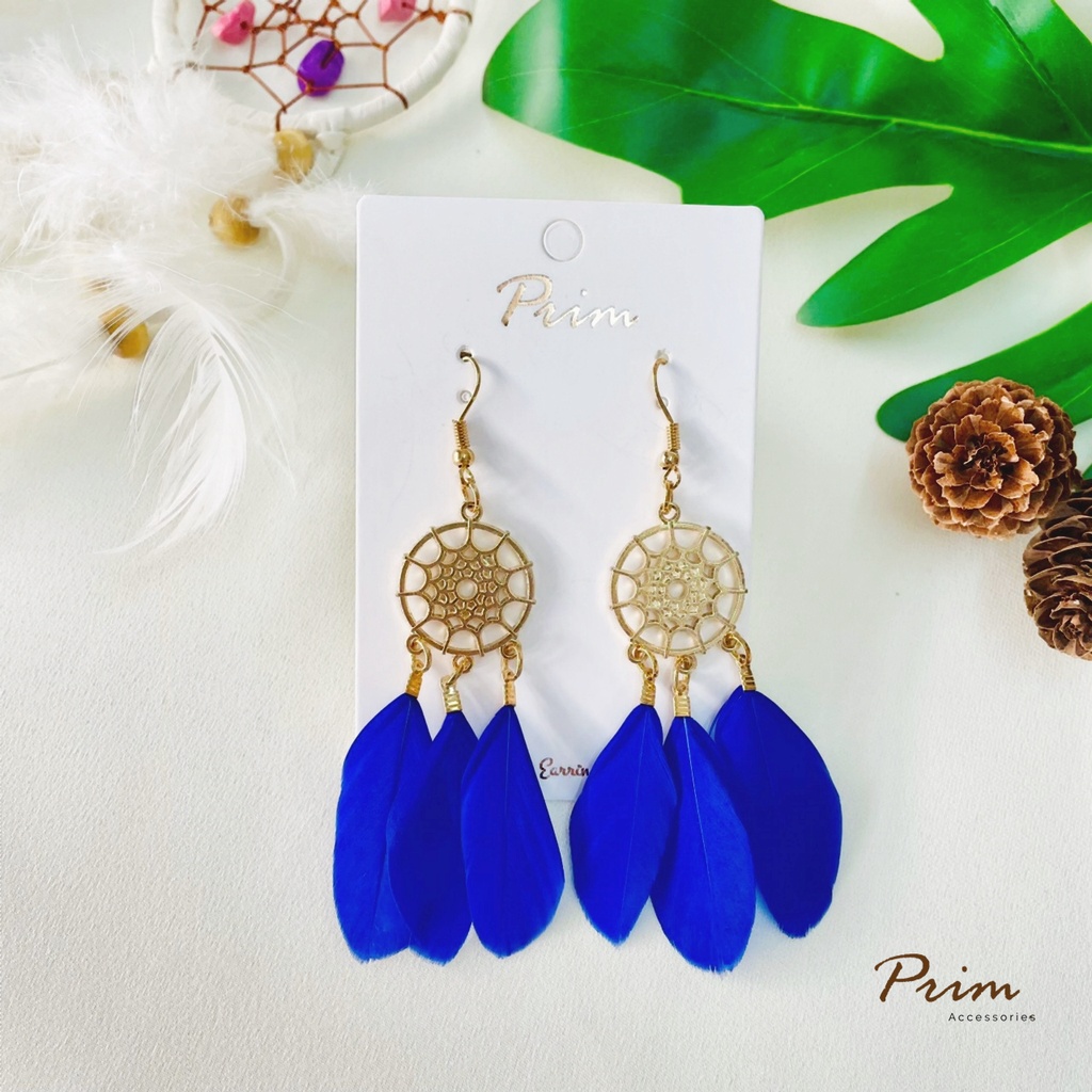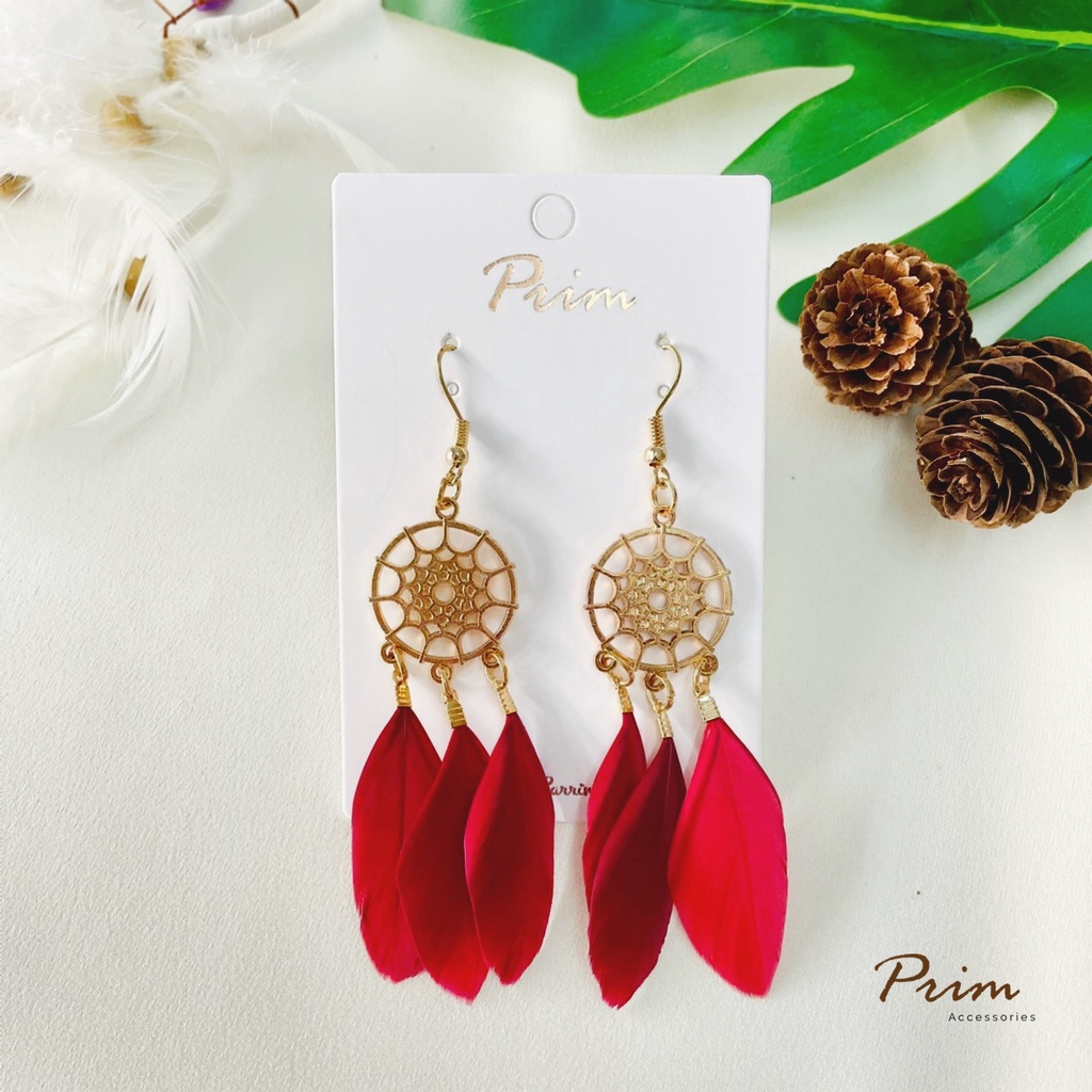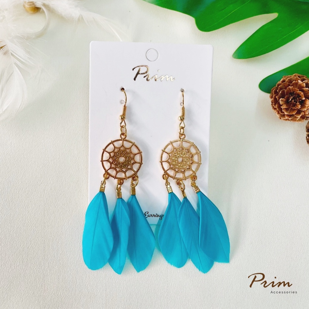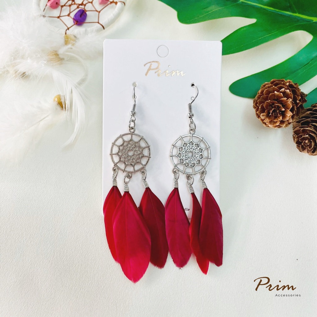 ต่างหูขนนก ลายตาข่ายดักฝัน Dream Catcher สไตล์โบฮีเมียน