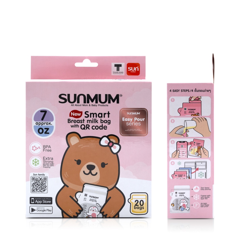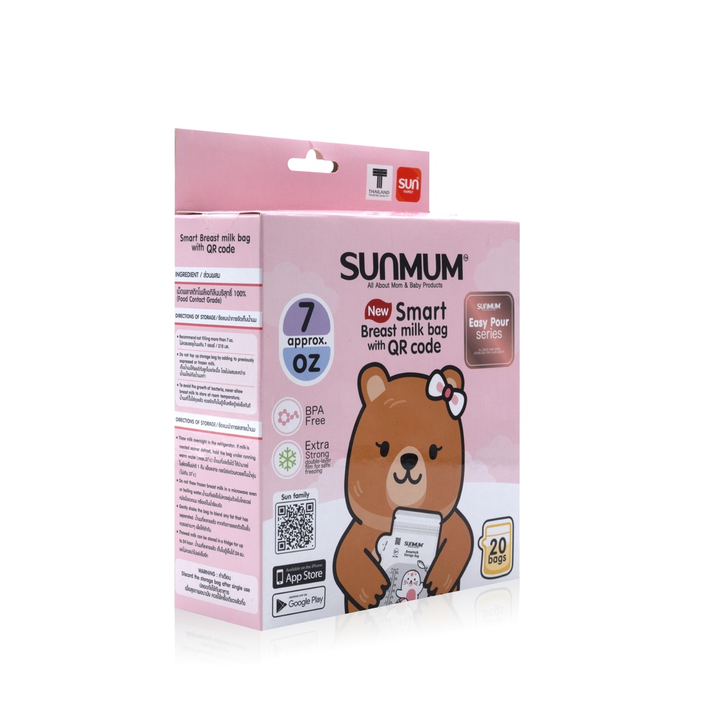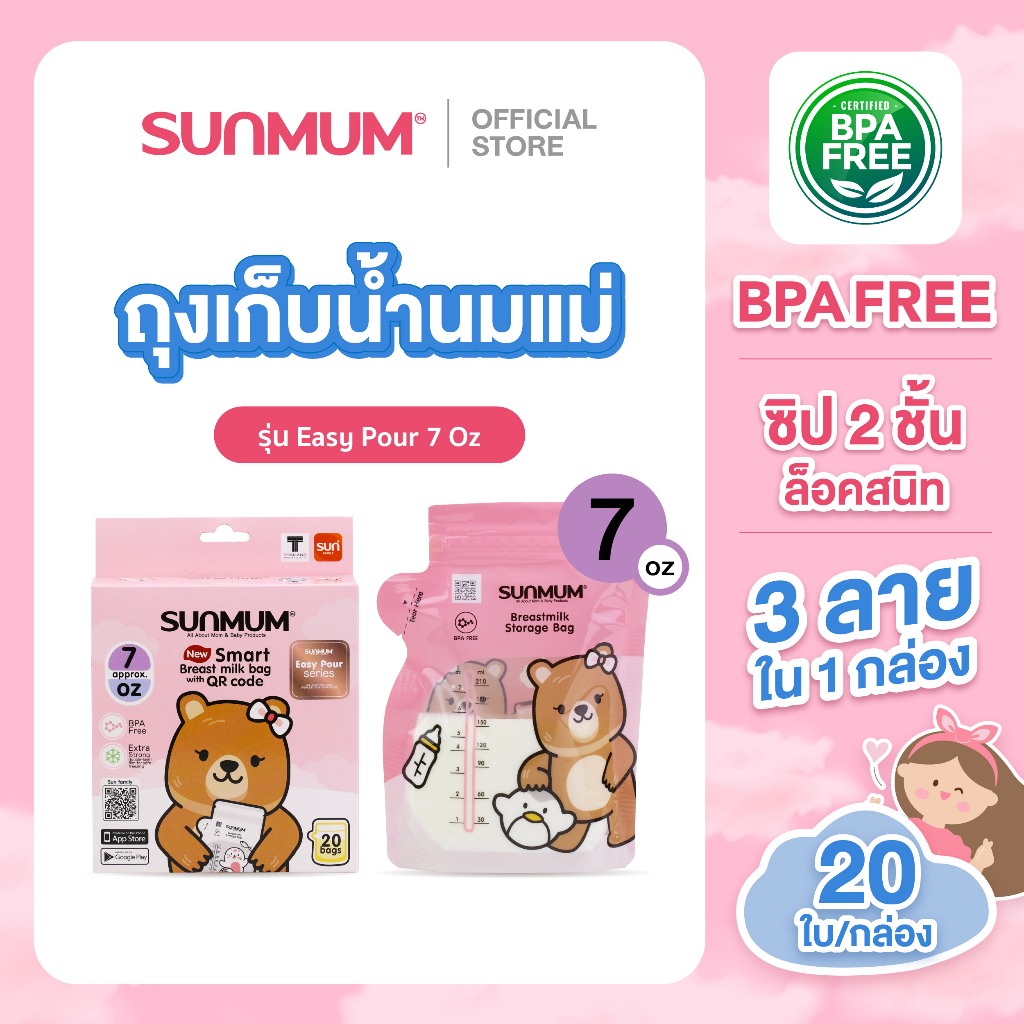 SUNMUM ถุงเก็บน้ำนม 7 ออนซ์ รุ่น Easy Pour บรรจุ 20ใบ/กล่อง ซิป 2 ชั้น ล็อคสนิท