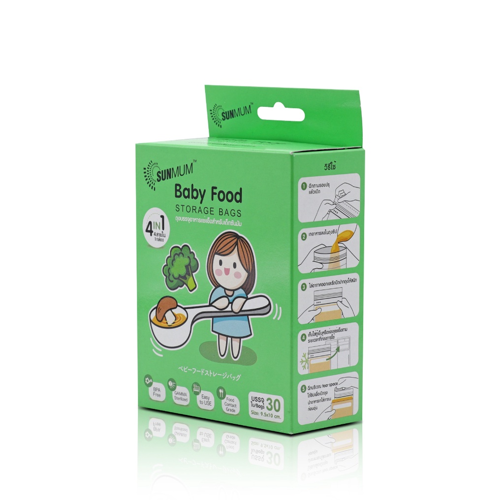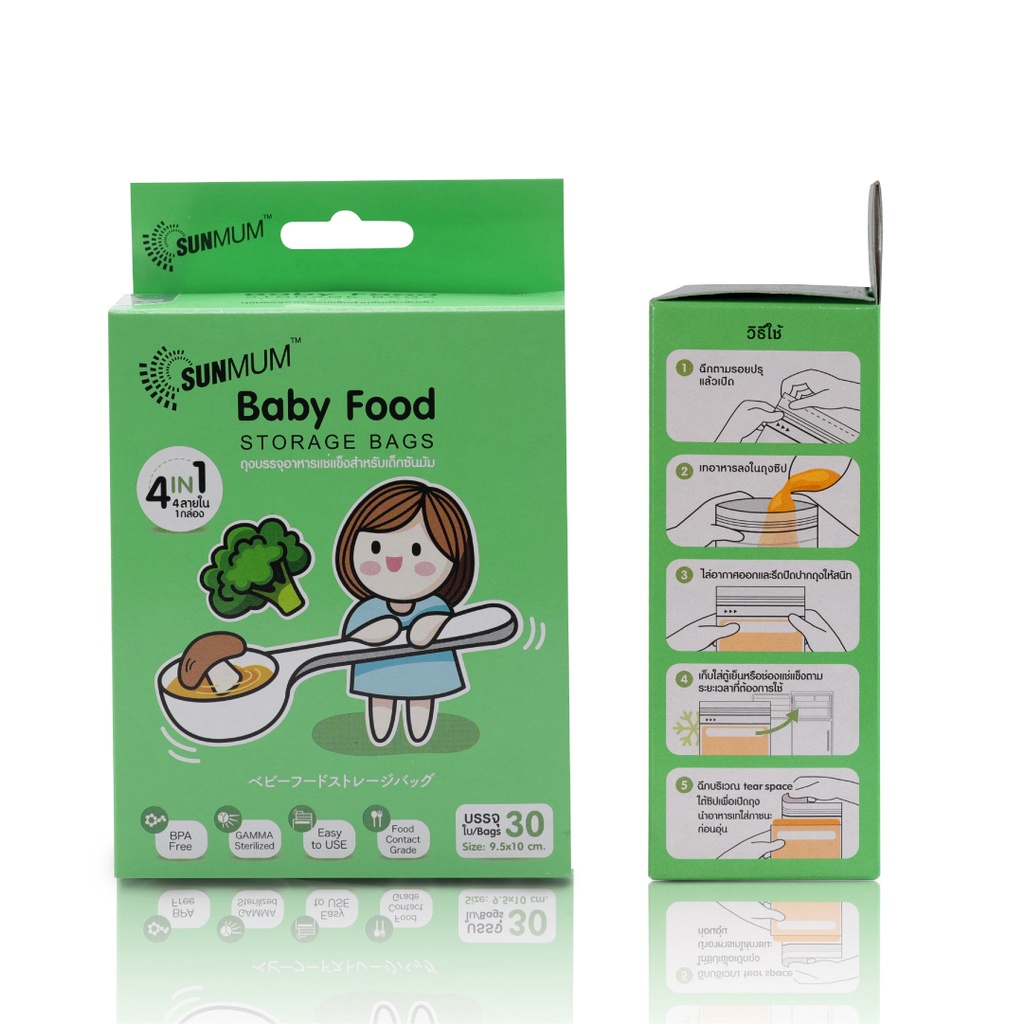 SUNMUM ถุงแบ่งอาหารเด็ก ขนาด 3 ออนซ์ ขนาด 9.5×10 ซม. บรรจุ 30 ใบ/กล่อง มี 4 ลายใน 1 กล่อง พกพาสะดวก ซิปปิดแน่นสนิท