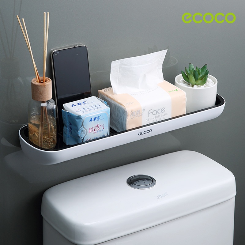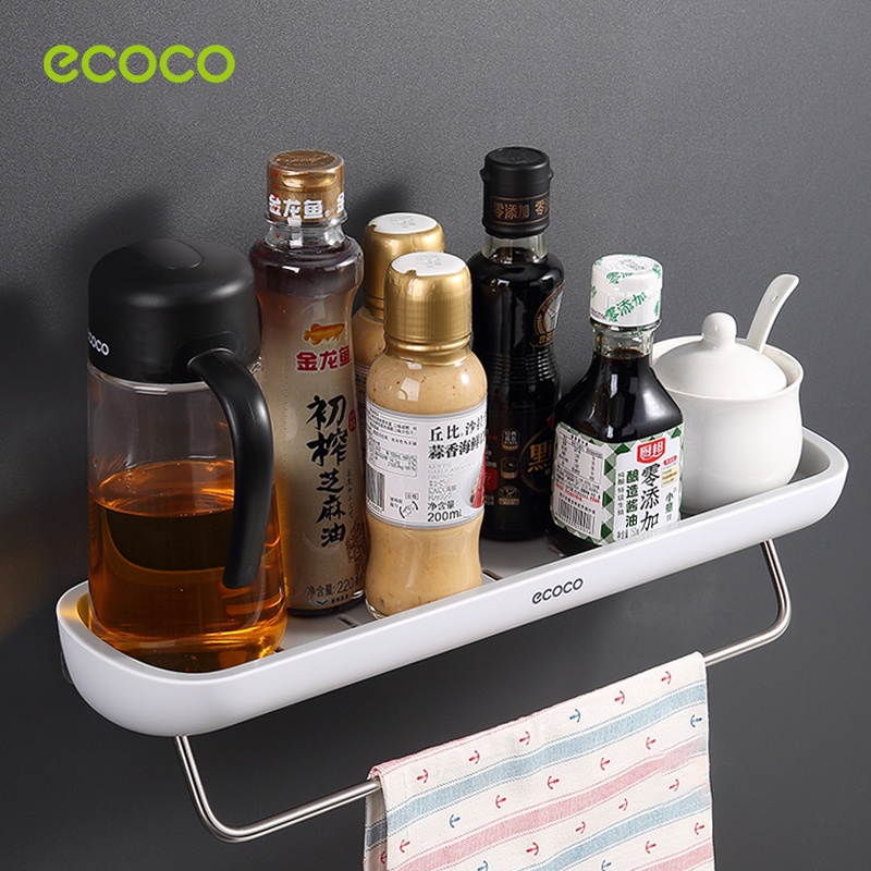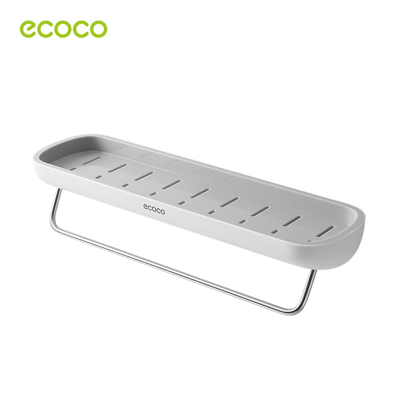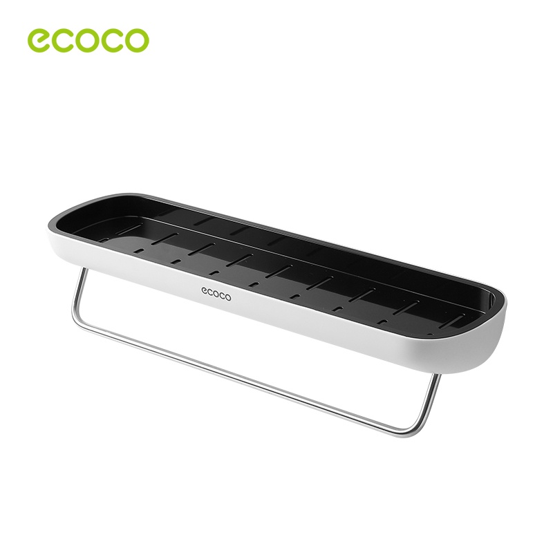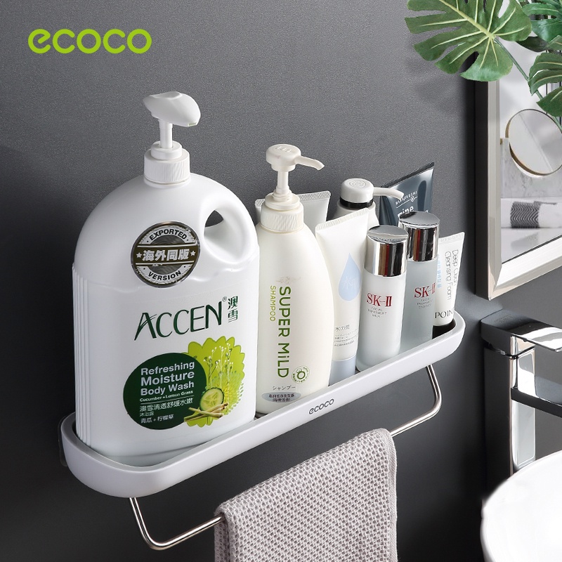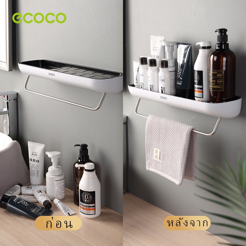 [พร้อมส่ง]ECOCO ชั้นวางของในห้องน้ำ กันน้ำ ชั้นเก็บของ ติดผนัง รุ่นไม่ต้องเจาะ พร้อมราวแขวนผ้าเช็ดตัว E1923