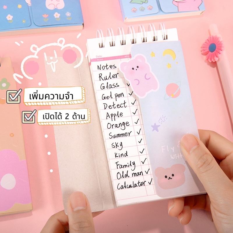 สมุดจดศัพท์ คำศัพท์ สมุดบันทึก สมุดโน๊ต ลายการ์ตูน เปิด/ปิดคำศัพท์ ช่วยให้จำง่ายขึ้น! พกง่าย ท่องศัพท์ ภาษาอังกฤษ