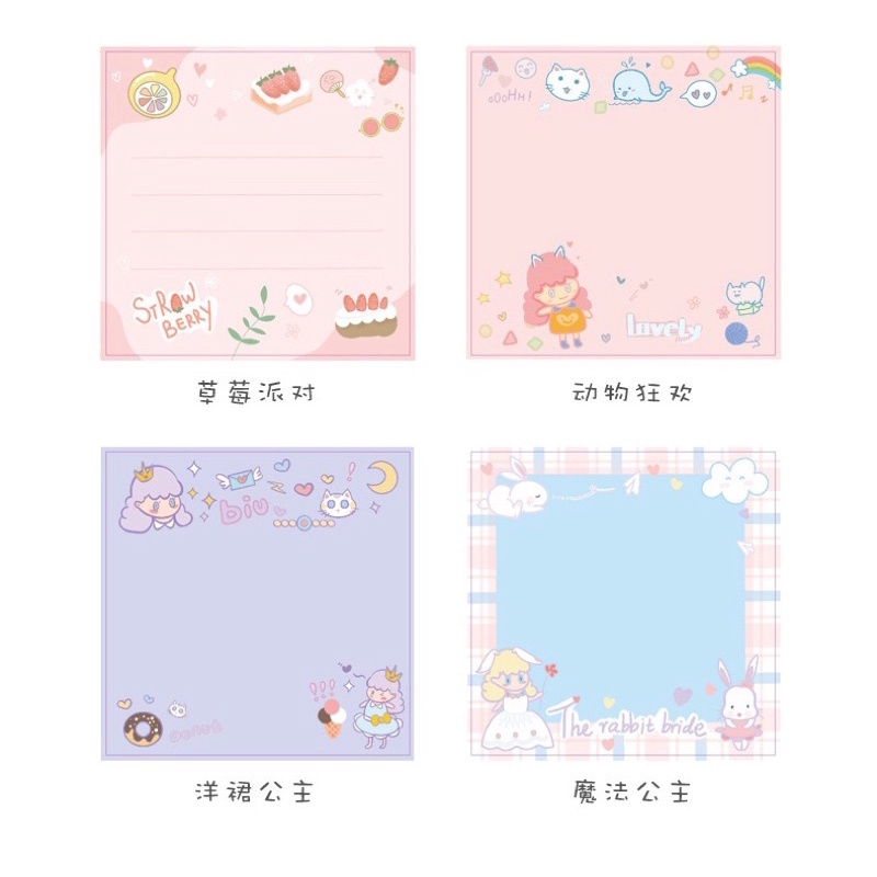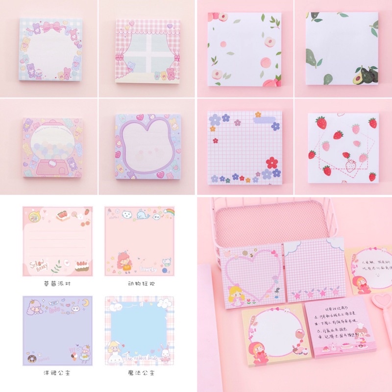 (สุดคุ้ม 80 แผ่น) กระดาษโน๊ต กาวในตัว หมีพาสเทล/ เจ้าหญิง/ ผลไม้ ลายน่ารักๆ เลือกได้ 16 แบบ! (Memo Note) ของแจก
