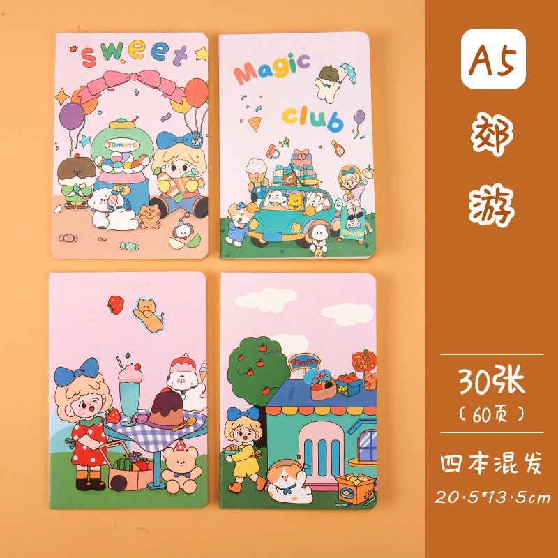 [ยกแพ็ค 4-5 เล่ม] สมุดโน๊ต A5 สมุดบันทึก สมุดมีเส้น การ์ตูน 4 แบบ สมุดโน้ต ไดอารี่ เครื่องเขียน อุปกรณ์การเรียน สมุด