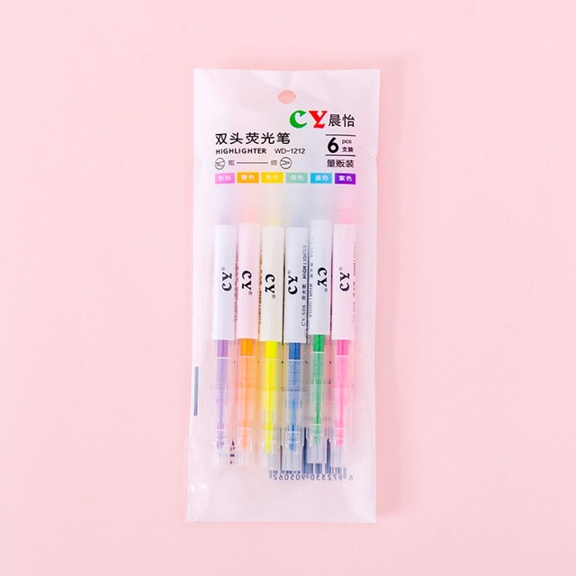 [ยกแพ็ค12หัว] ไฮไลท์ ปากกาไฮไลท์ 6 สี มี 2 หัว ออกใบกำกับภาษีได้ SET ปากกาเน้นข้อความ (Highlighter)