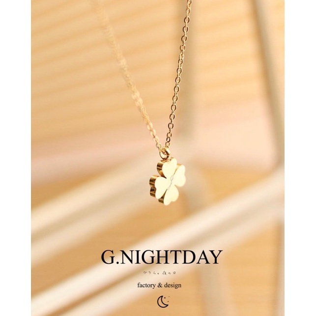 G.NIGHTDAY - สร้อยคอนำโชคใบโคลเวอร์ สัญลักษณความโชคดี สลักชื่อได้ V1