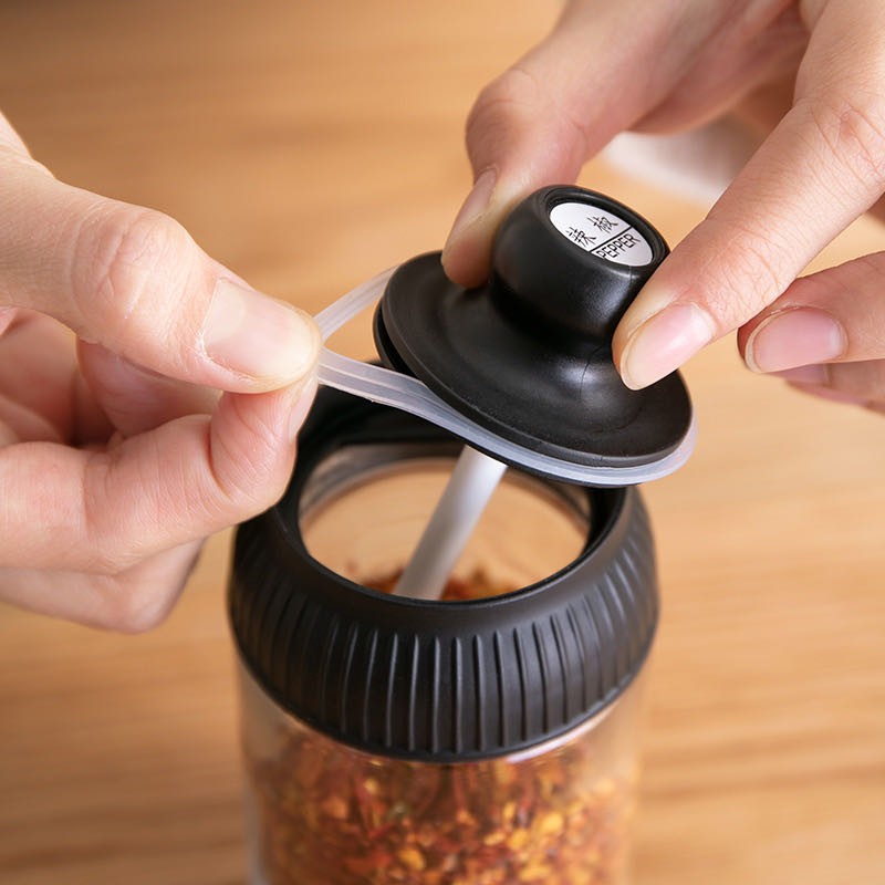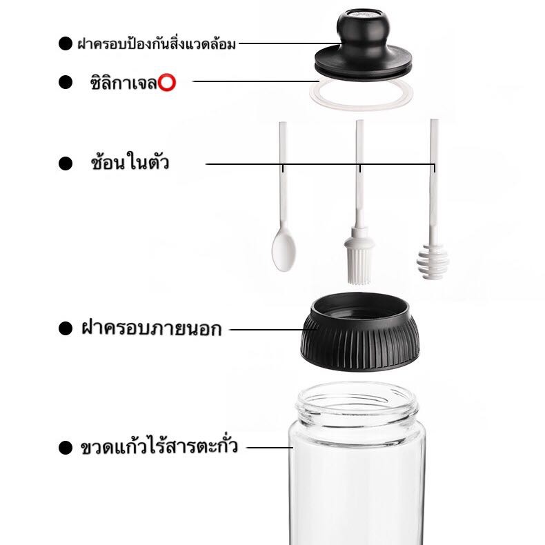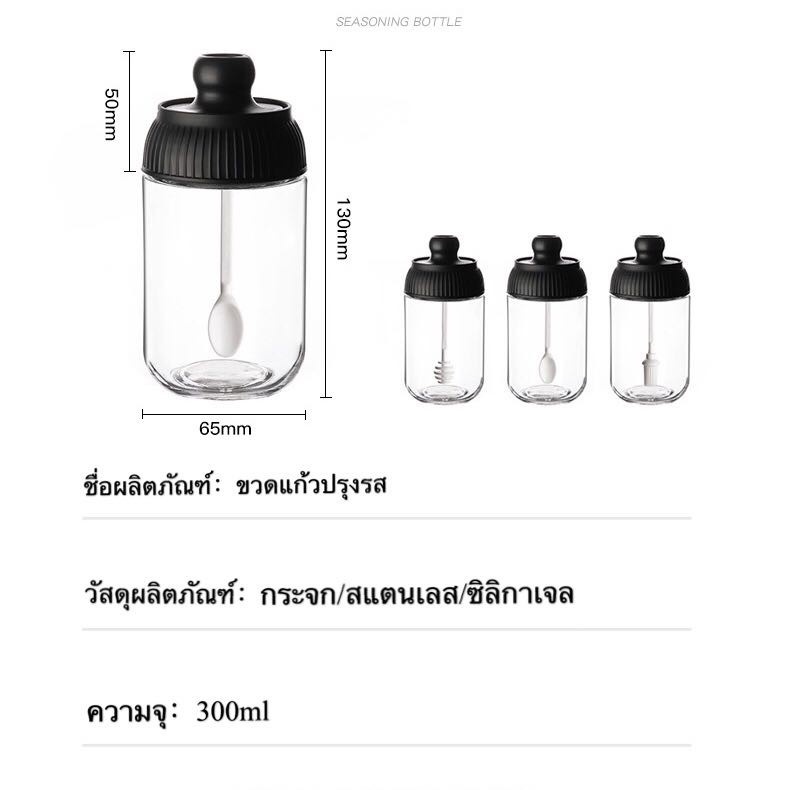 ขวดใส่เครื่องปรุง วัสดุแก้วอย่างดี มีช้อนในตัว ฝาซิลิโคนกันชื้น ขวดแก้วใส่เครื่องปรุง กระปุกใส่เครื่องเทศ