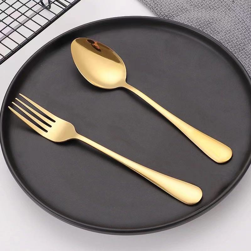 แสตนเลสช้อน&ส้อม&ช้อนขนมหวาน&มีดสเต็ก มีสีทอง,ดำ เงินส นาค(คุณภาพดี)