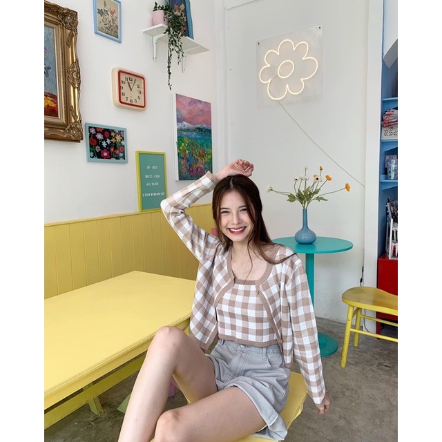 3pcs.basket "S2103" Butterscotch set เซ็ตเสื้อคลุม + สายเดี่ยว