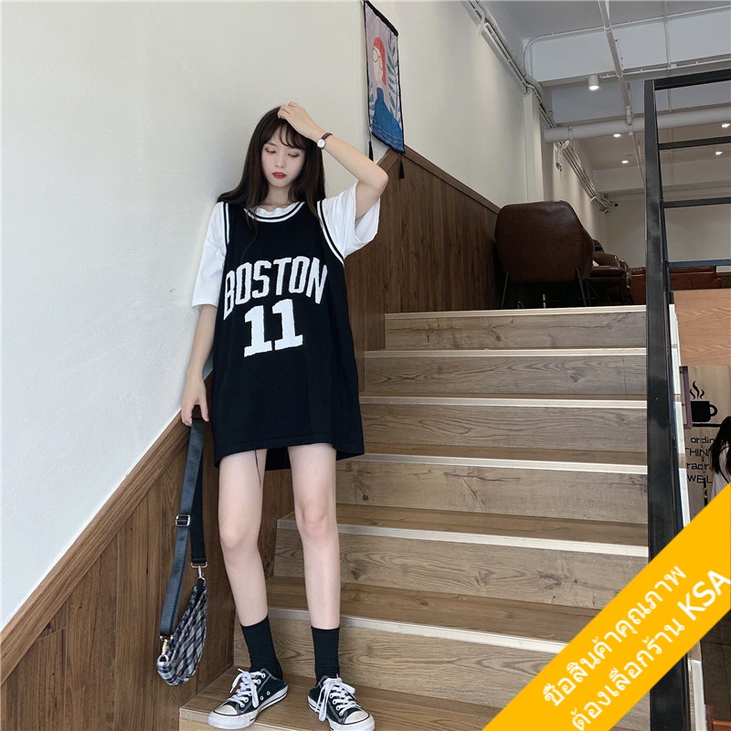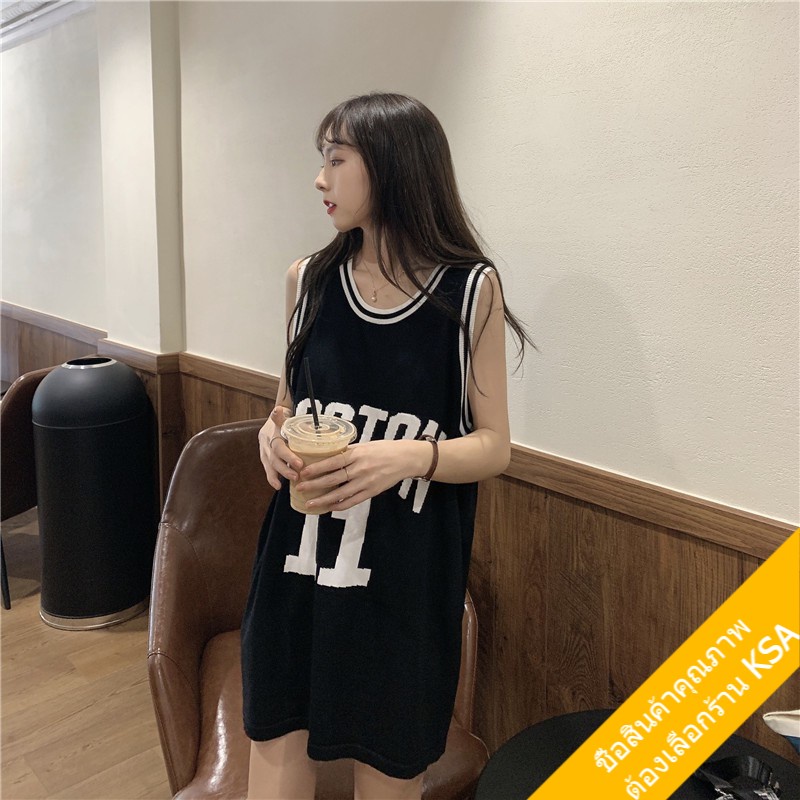 KSA เสื้อแขนกุดผู้หญิงเดรสแขนกุด oversize เสื้อผ้าสไตล์เกาหลีแฟชั่นวัยรุ่น เกาหลี เสื้อยืดกล้ามสตรีทกีฬา
