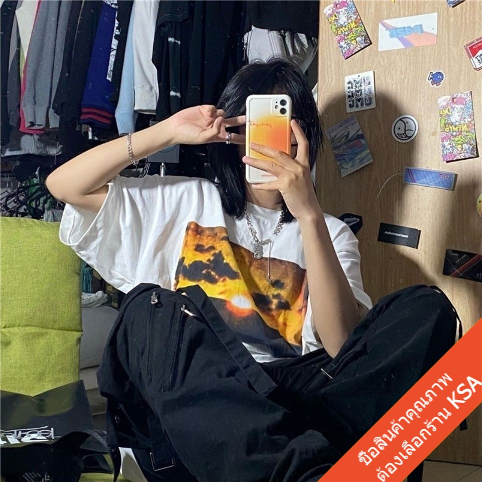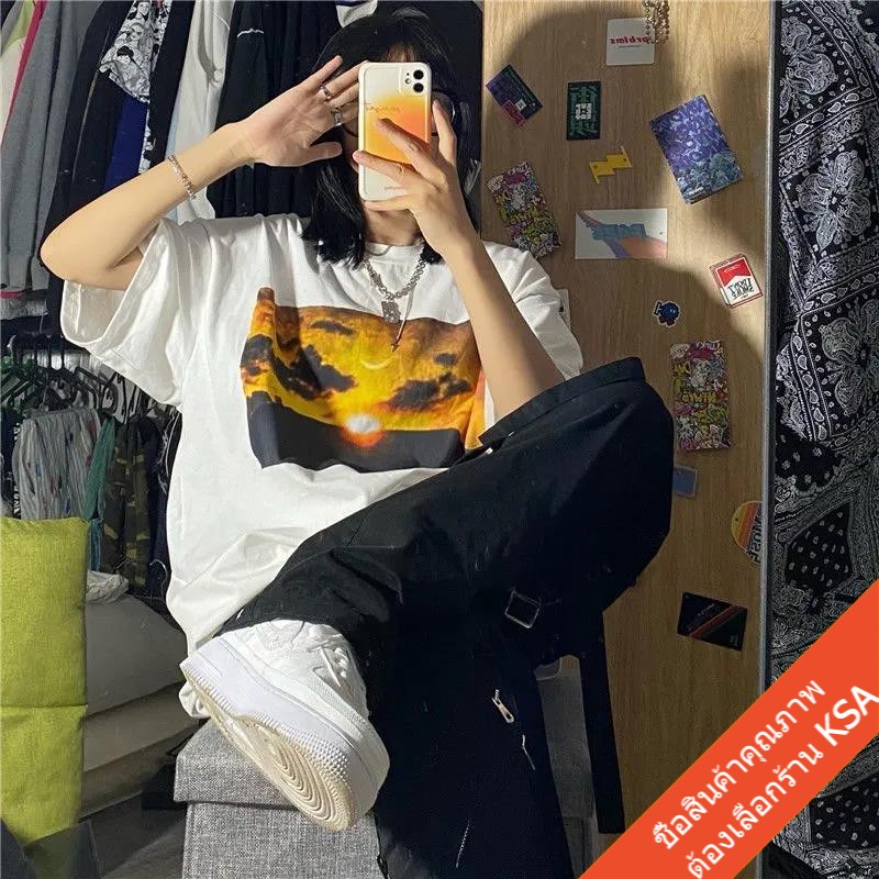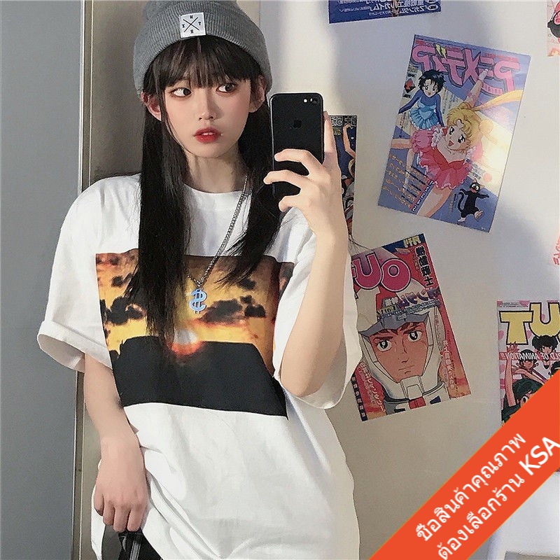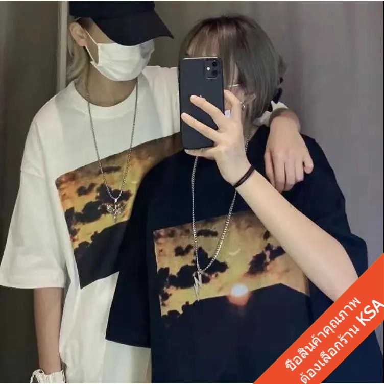 KSA เสื้อยืดคู่รักชายหญิง ทรงวัยรุ่น Oversize เสื้อผ้าแฟชั่นเกาหลี ฮิปฮอป แขนสั้น เสื้อโอเวอร์ไซส์ วินเทจ สินค้าใหม่