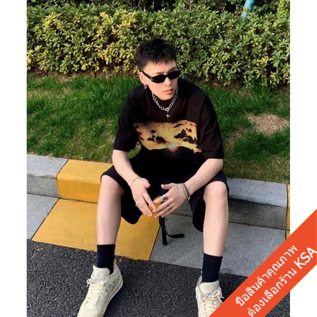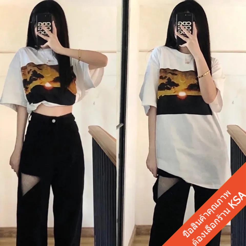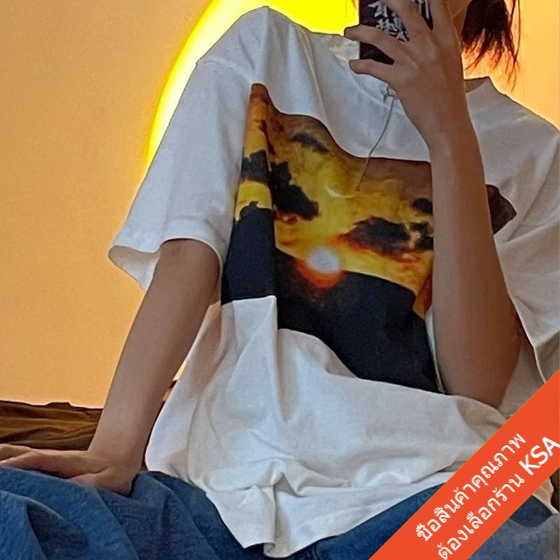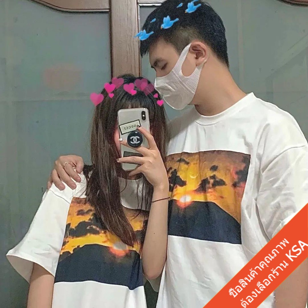 KSA เสื้อยืดคู่รักชายหญิง ทรงวัยรุ่น Oversize เสื้อผ้าแฟชั่นเกาหลี ฮิปฮอป แขนสั้น เสื้อโอเวอร์ไซส์ วินเทจ สินค้าใหม่