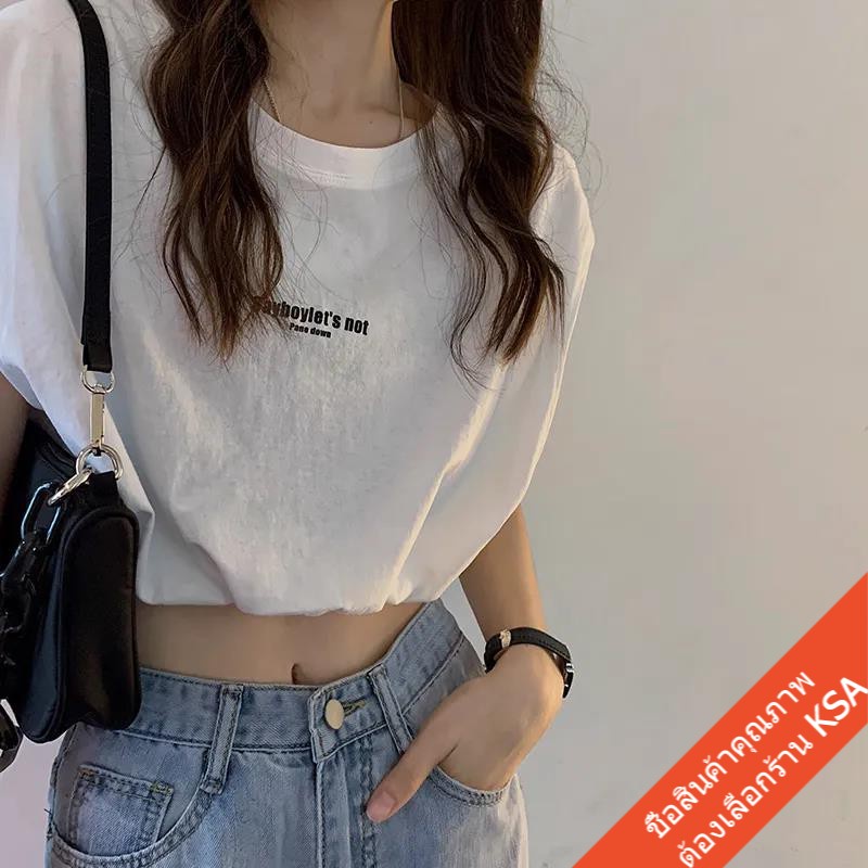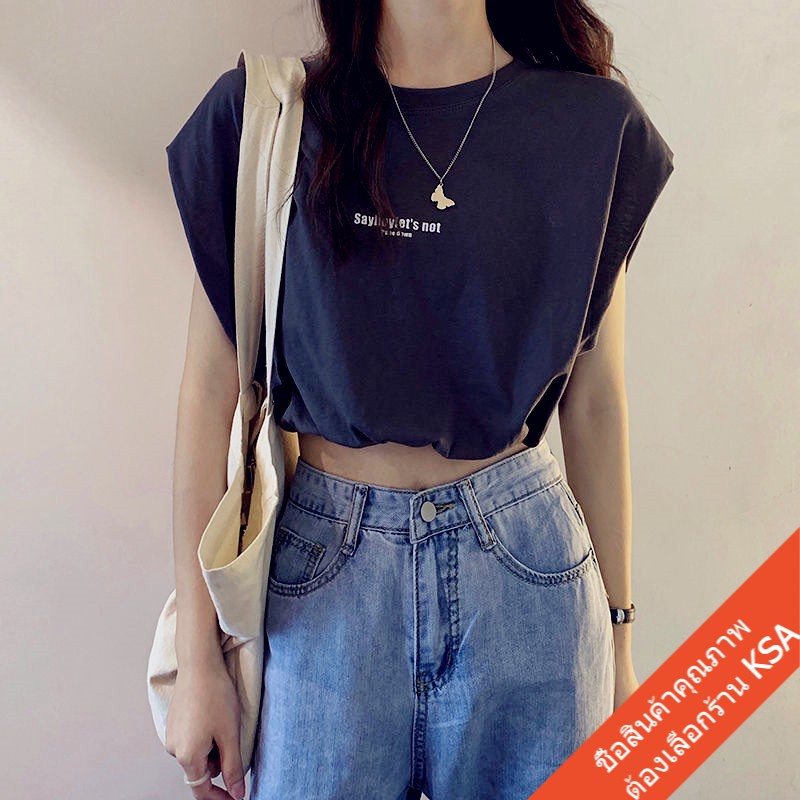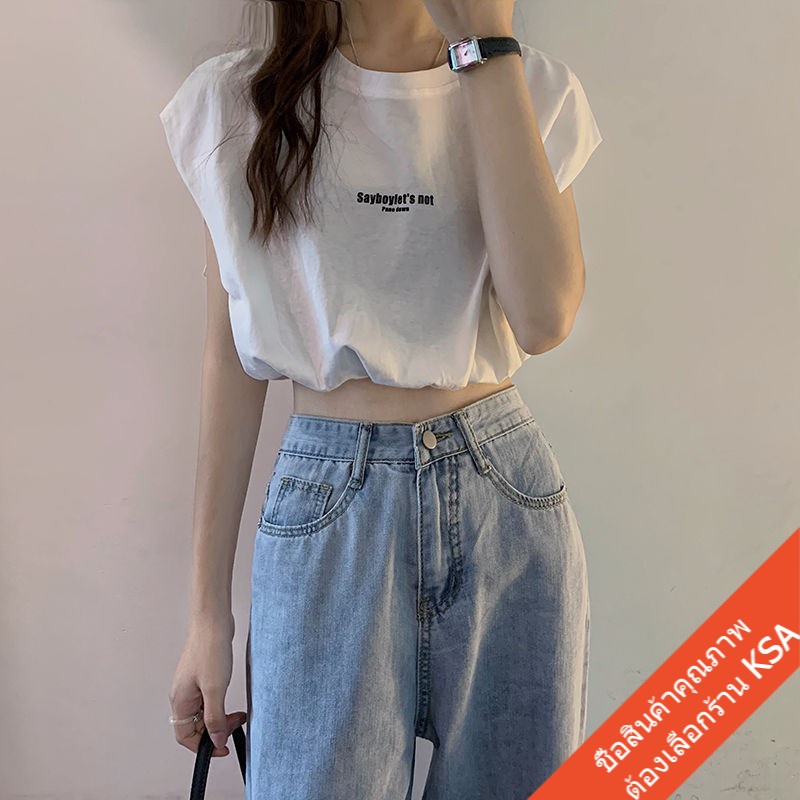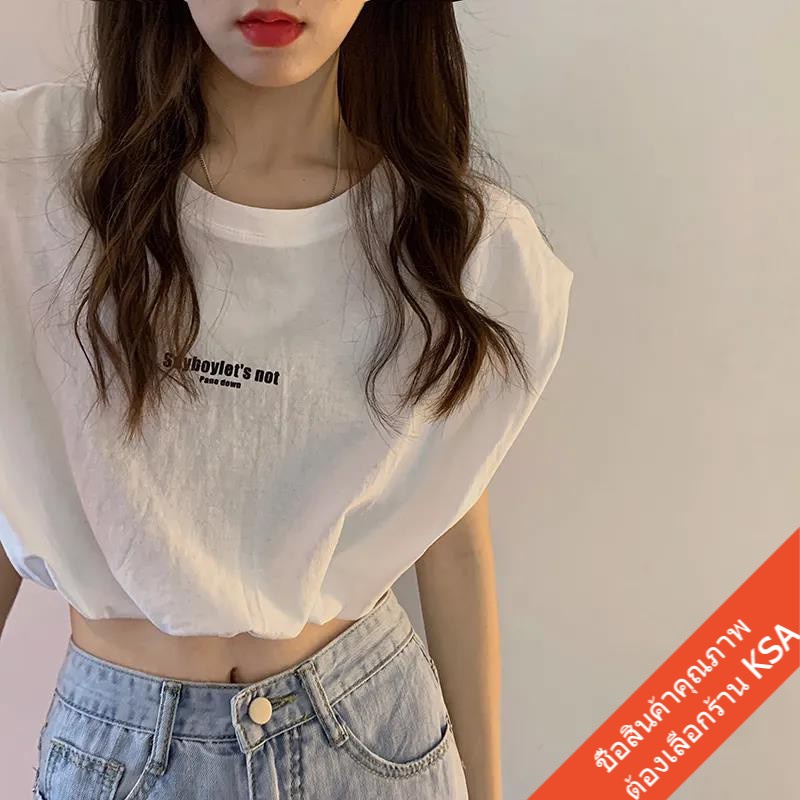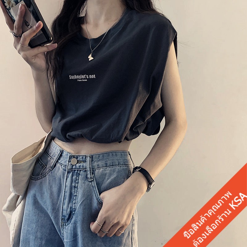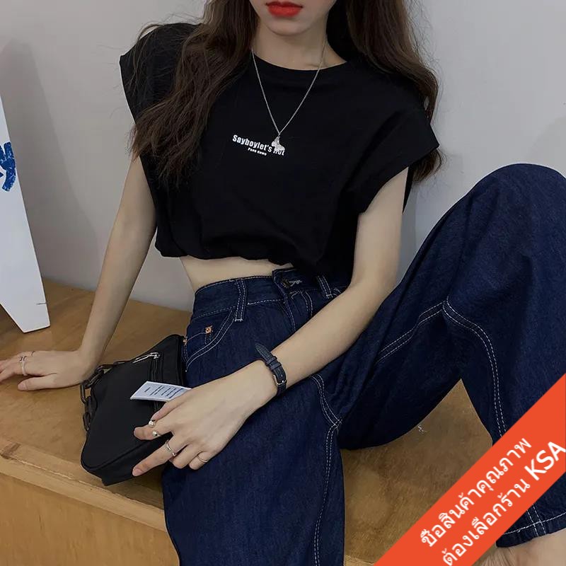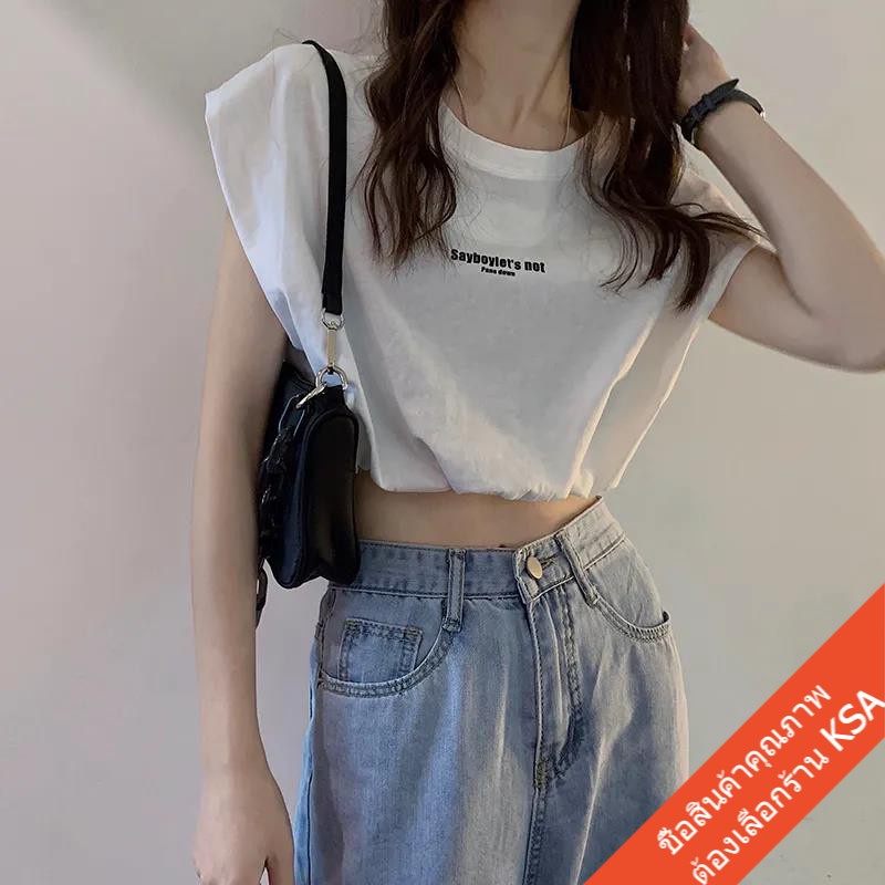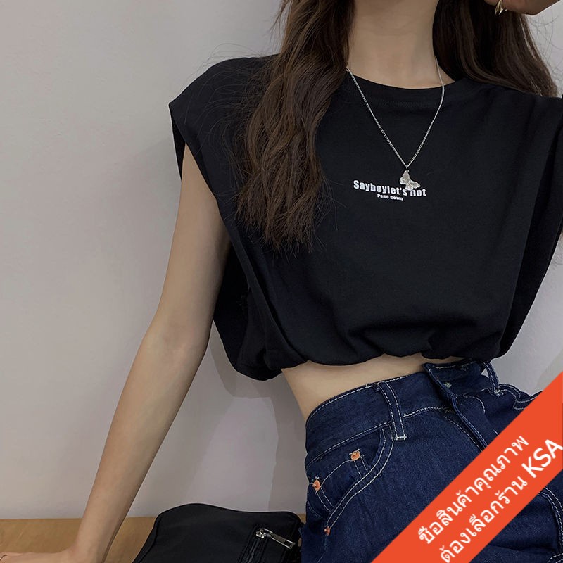 เสื้อยื ดแขนกุดผู้หญิง ⚛️เสื้อผ้าแฟชั่นเซ็กซี่สไตล์เกาหลี⚛️เสื้อครอปเอวลอยสีขาว สีดำ ดฮิตๆ วัยรุ่น crop top