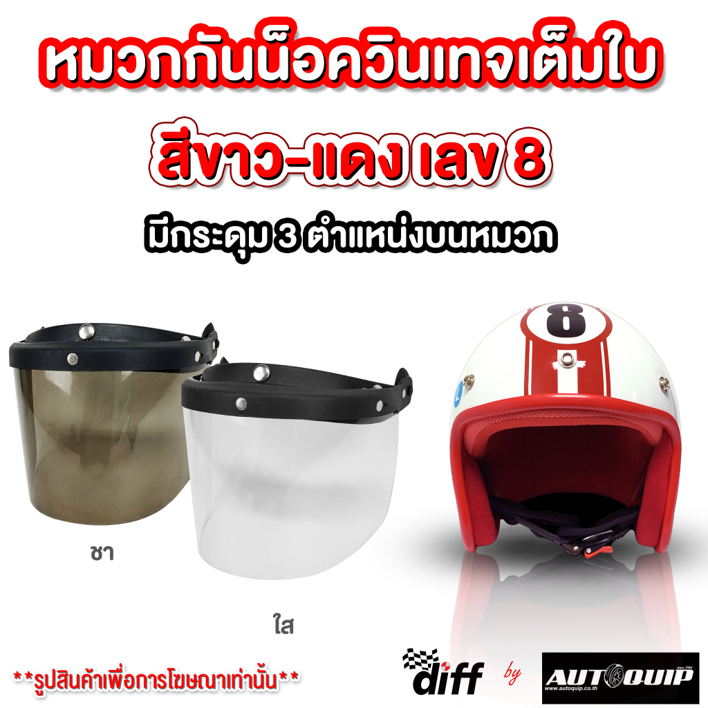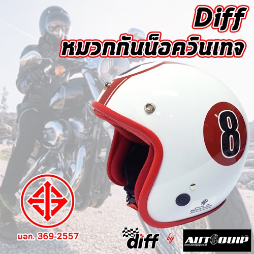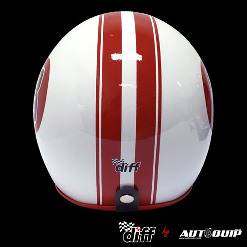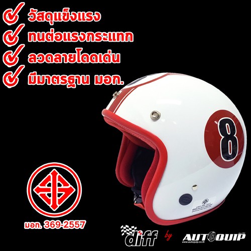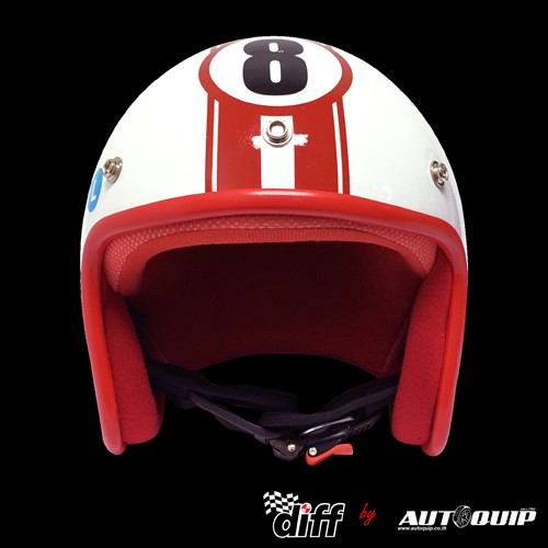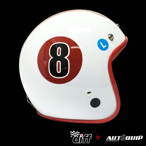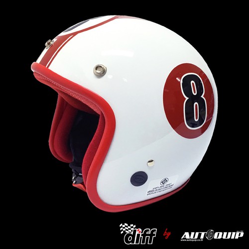 DIFF หมวกกันน็อควินเทจเต็มใบ สีขาวแดง ลายเลข 8 ไซด์ M ขนาด 55-56 CM.
