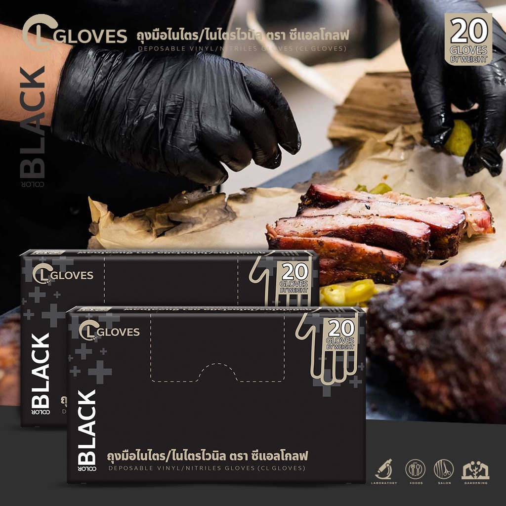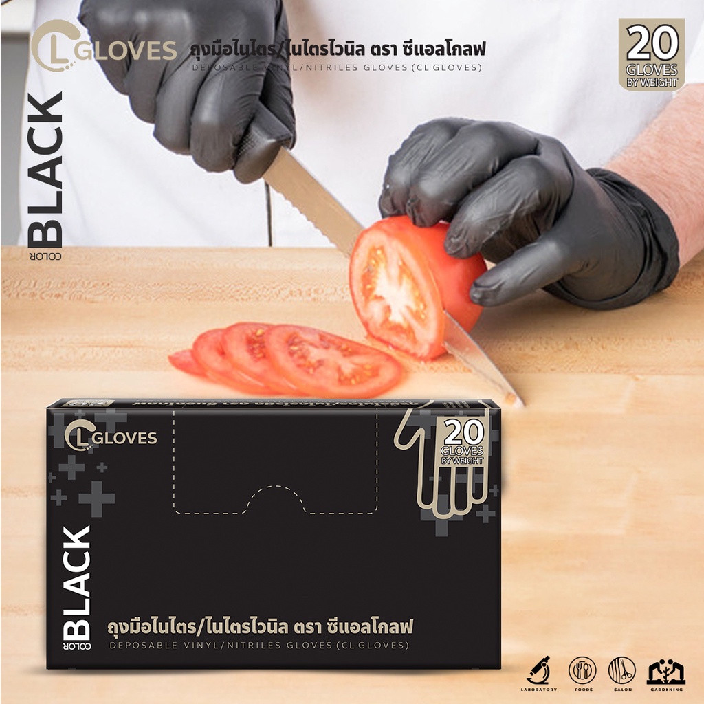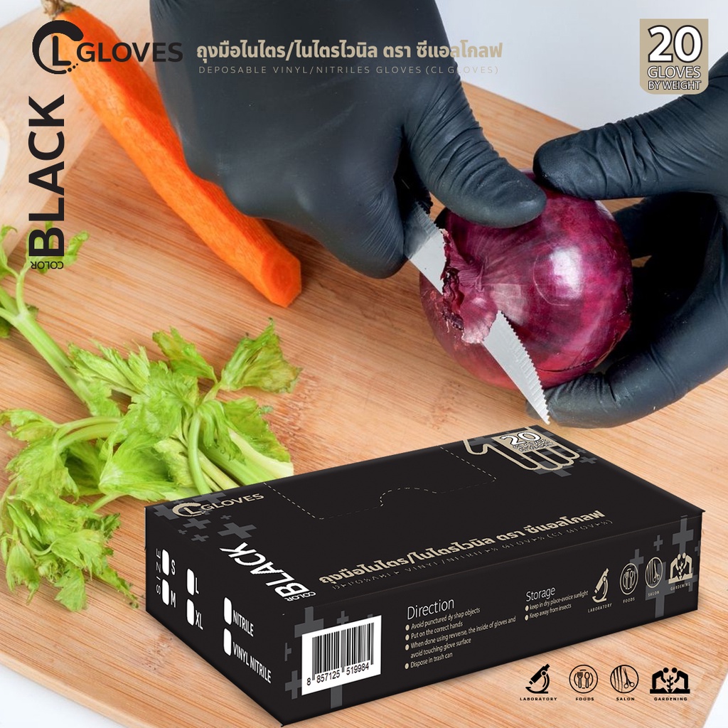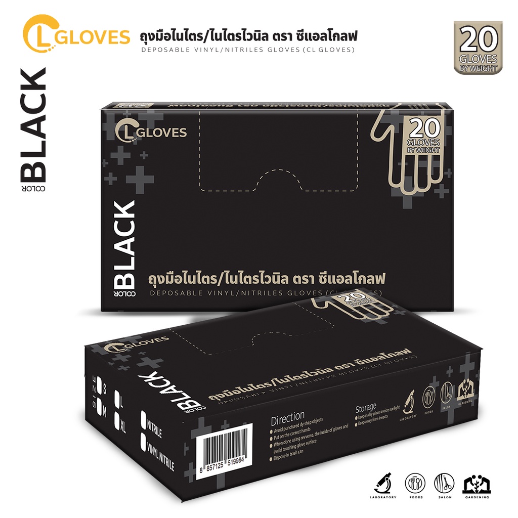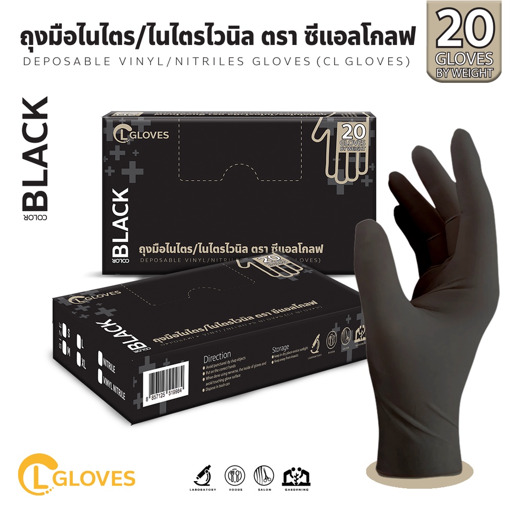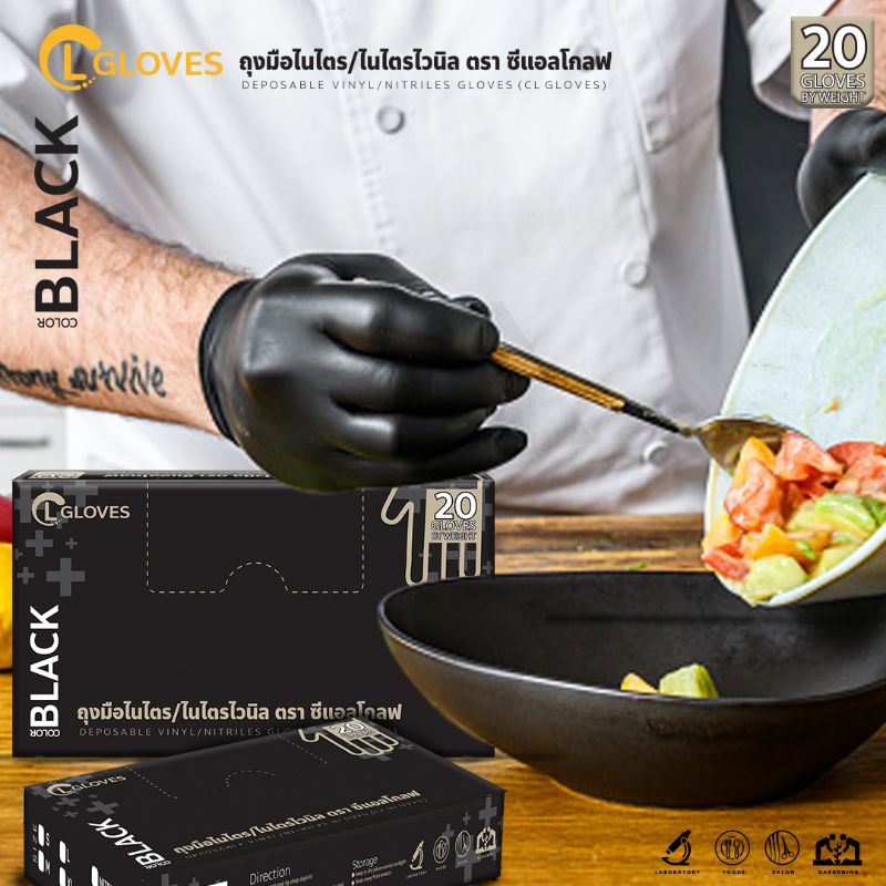 [20 ชิ้น] (สีดำ) ถุงมือไนไตร ชนิดไม่มีแป้ง สำหรับพกพา คุณภาพดี Nitrile Gloves การันตีแบรนด์ CL Glove