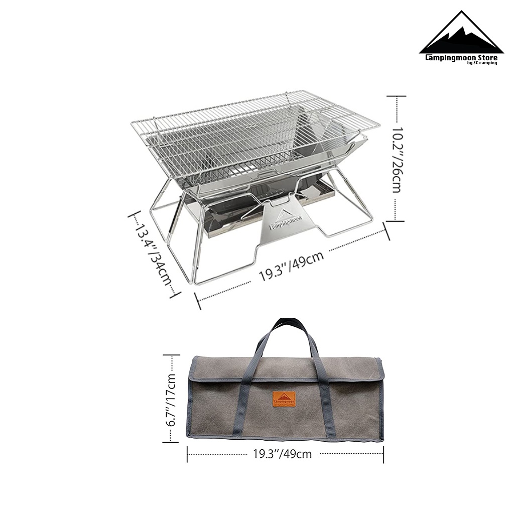 เตาปิ้งย่าง Campingmoon MT-03 สแตนเลส ไซส์ใหญ่ พร้อมกระเป๋าจัดเก็บ