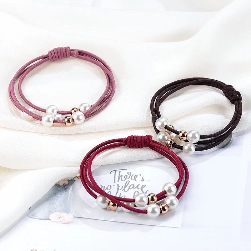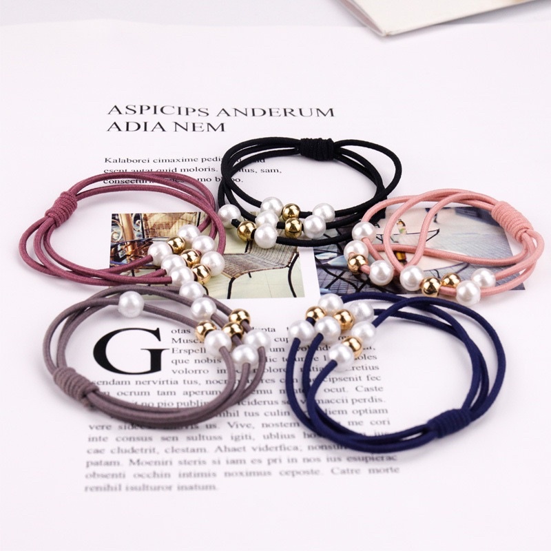 *หนังยางรัดผมเกาหลีสไตล์เกาหลีไข่มุข ความยืดหยุ่นสูง ยางรัดผม สำหรับผู้หญิง PP53