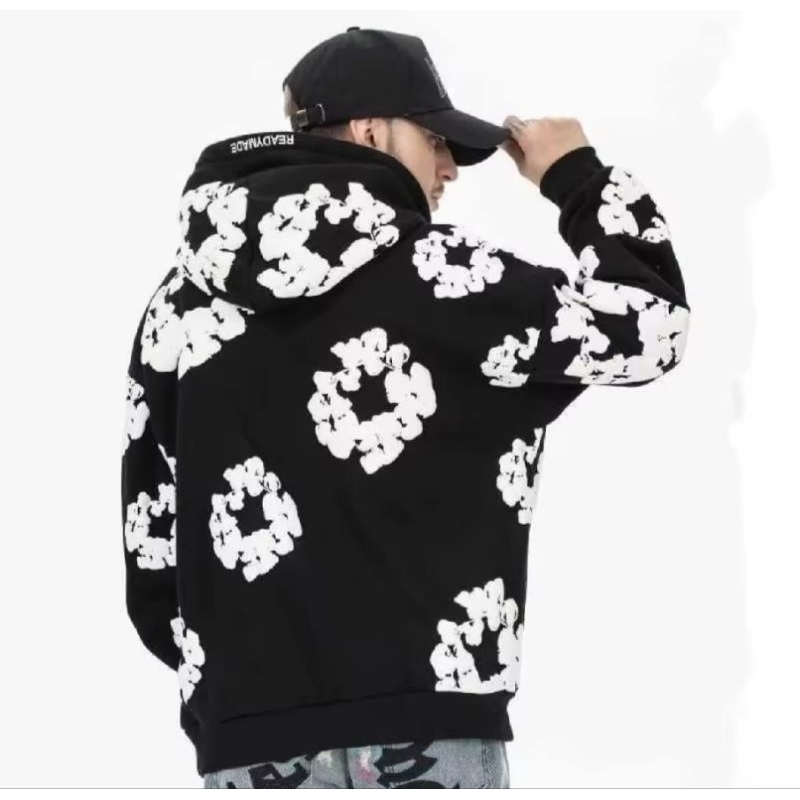 เสื้อฮู้ดลายดอกผ้าหนาใส่ได้ทั้งชายและหญิง เสื้อกันหนาวกันแดดกันลมได้ สินค้าพร้อมส่งในไทย
