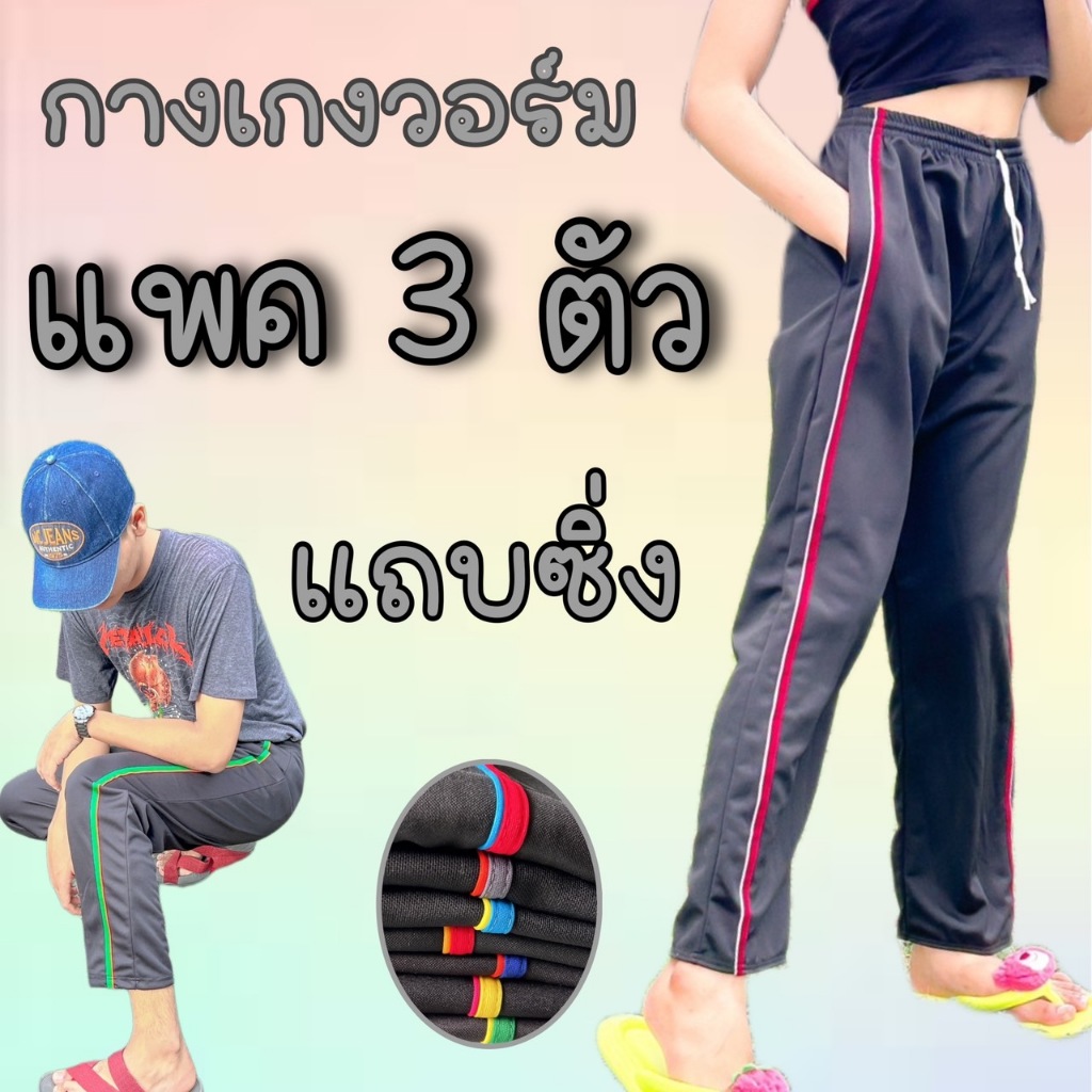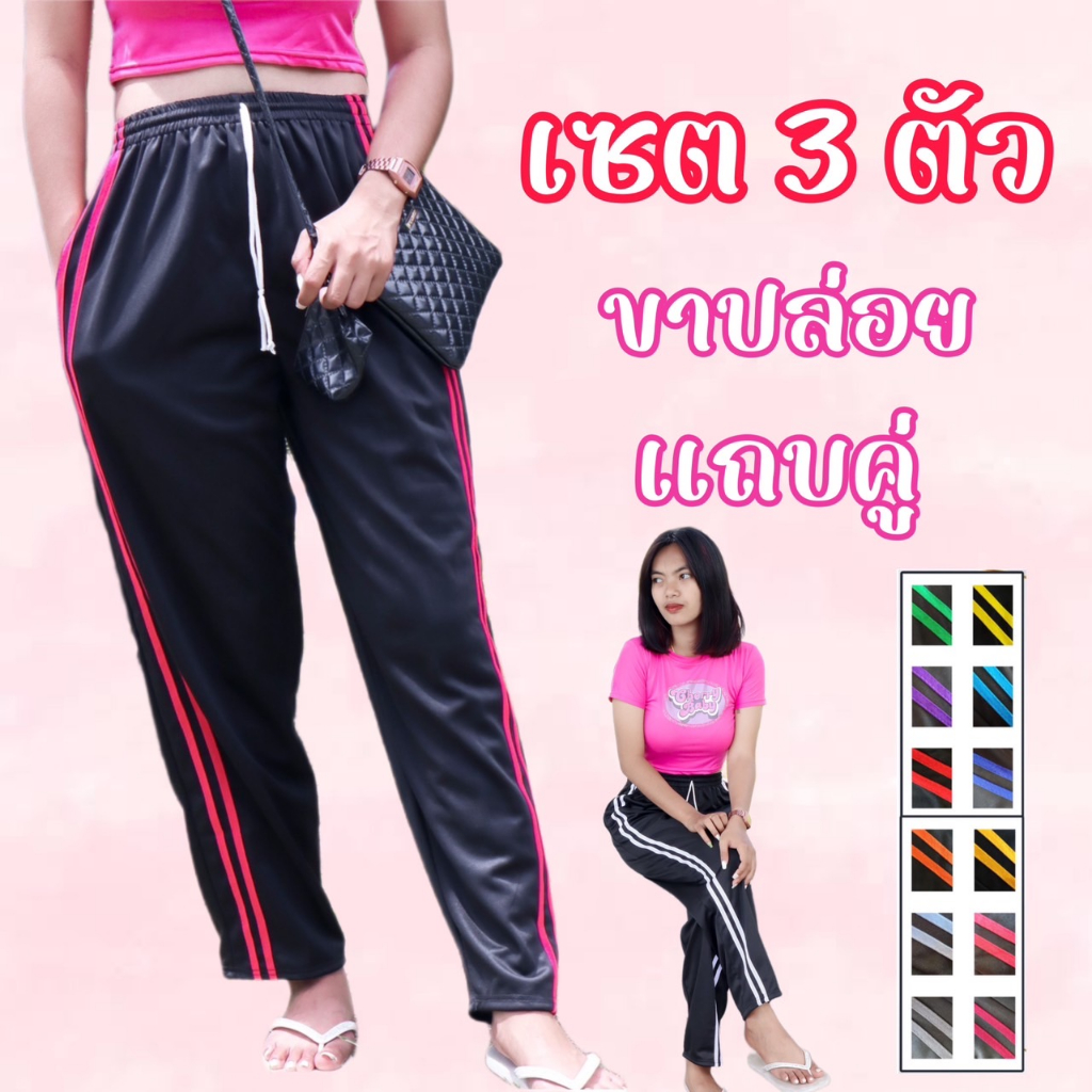 (เซต3ตัว) กางเกงวอร์มขาปล่อย แถบคู่+แถบซิ่ง ผ้าวอร์มใส่สบาย