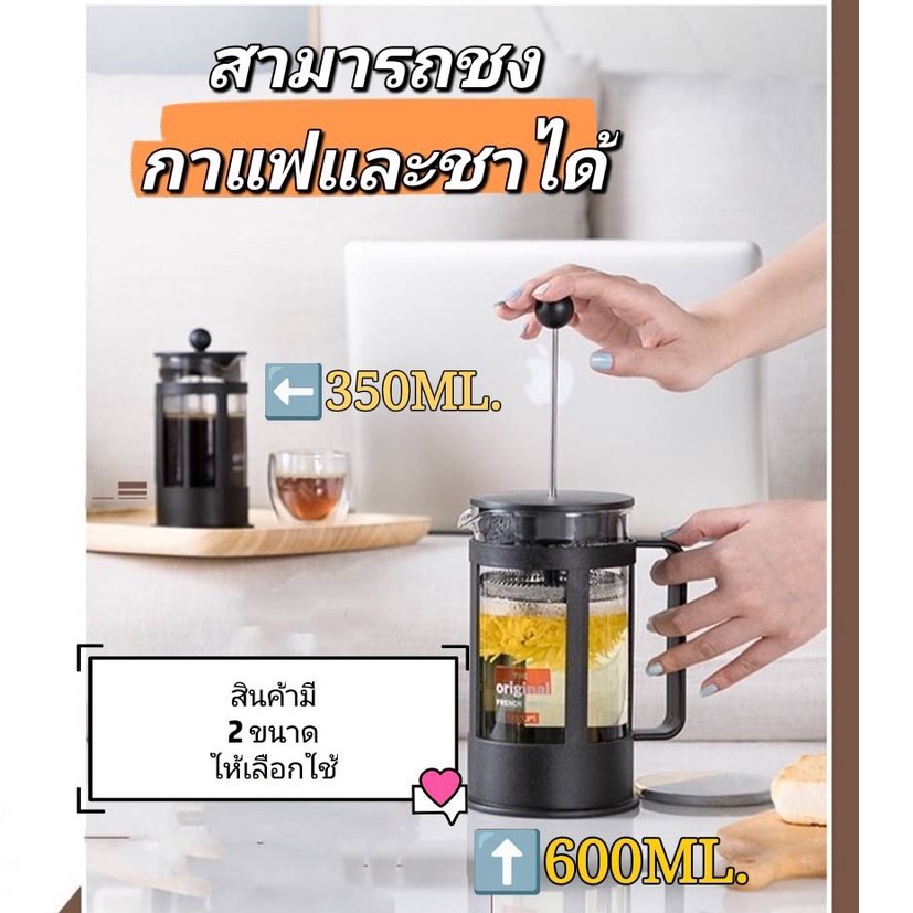 เหยือกชงกาแฟสด แกนกดสแตนเลส แก้วชงกาแฟและสามารถชงชาได้ มี 2 ขนาดให้เลือกใช้
