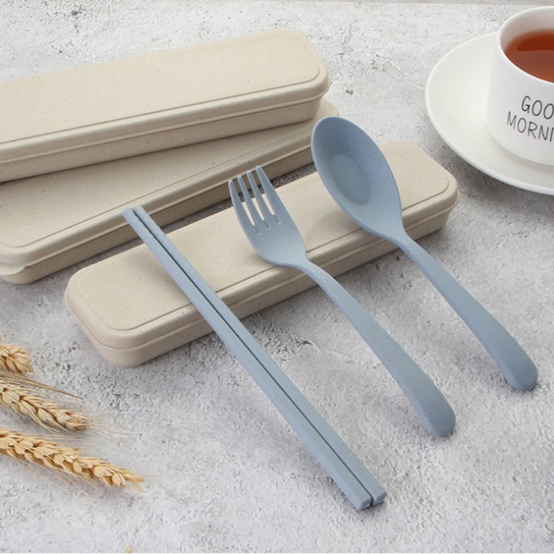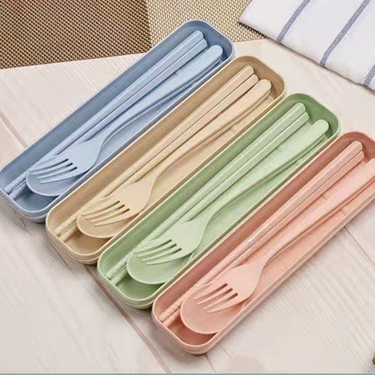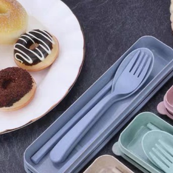 พร้อมส่ง ชุดช้อนส้อม+ตะเกียบ พร้อมกล่องใส่ขนาดพกพา มี 4 สีให้เลือก