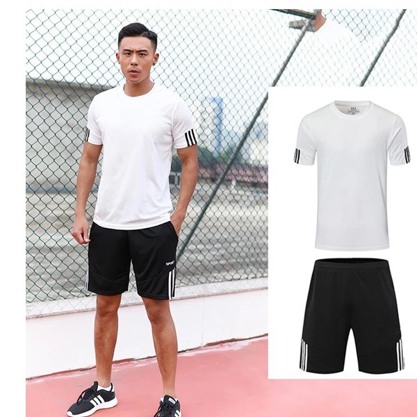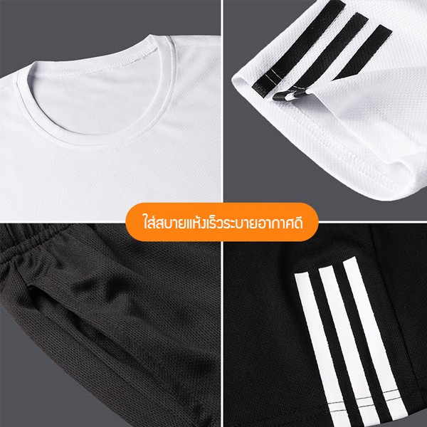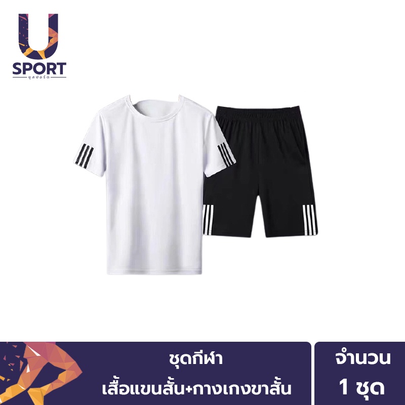 Usport ชุดกีฬา เสื้อพร้อมกางเกงขาสั้น แบบ Unisex แถบ 3 ขีด ใส่วิ่งออกกำลังกาย ใส่สบายแห้งเร็วระบายอากาศดี