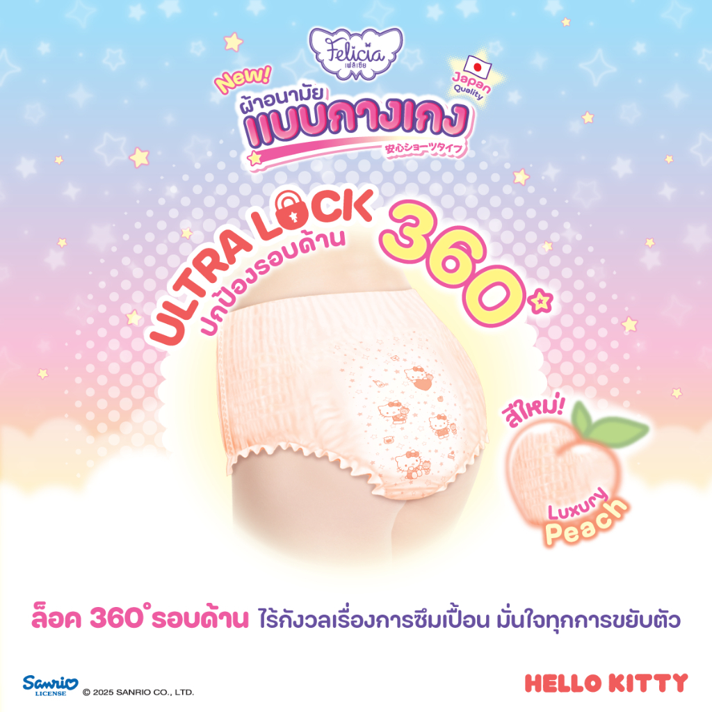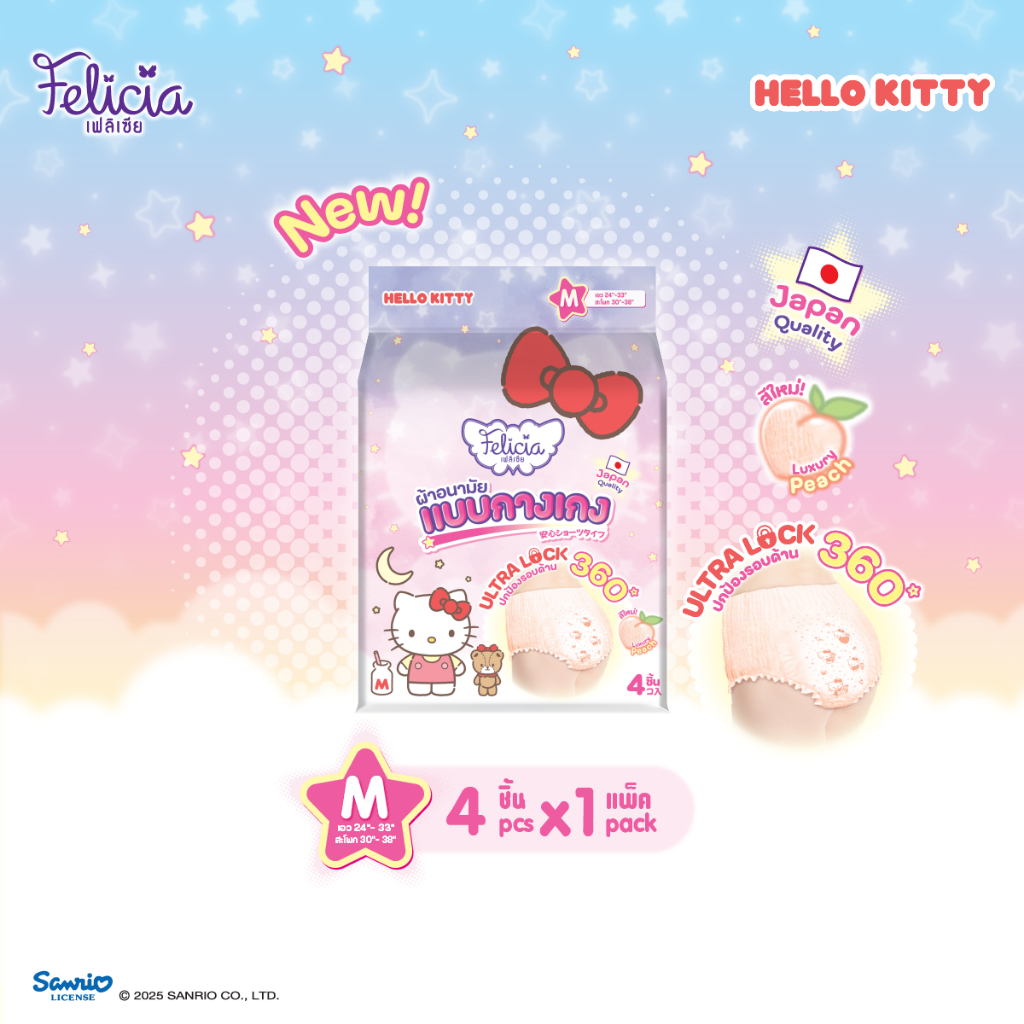 Felicia เฟลิเซียผ้าอนามัยแบบกางเกงใส่สบาย เรียบเนียน ไซส์ M/L/XL 4 ชิ้น ลายลิขสิทธิ์แท้ Hello Kitty รุ่น Ultra Lock
