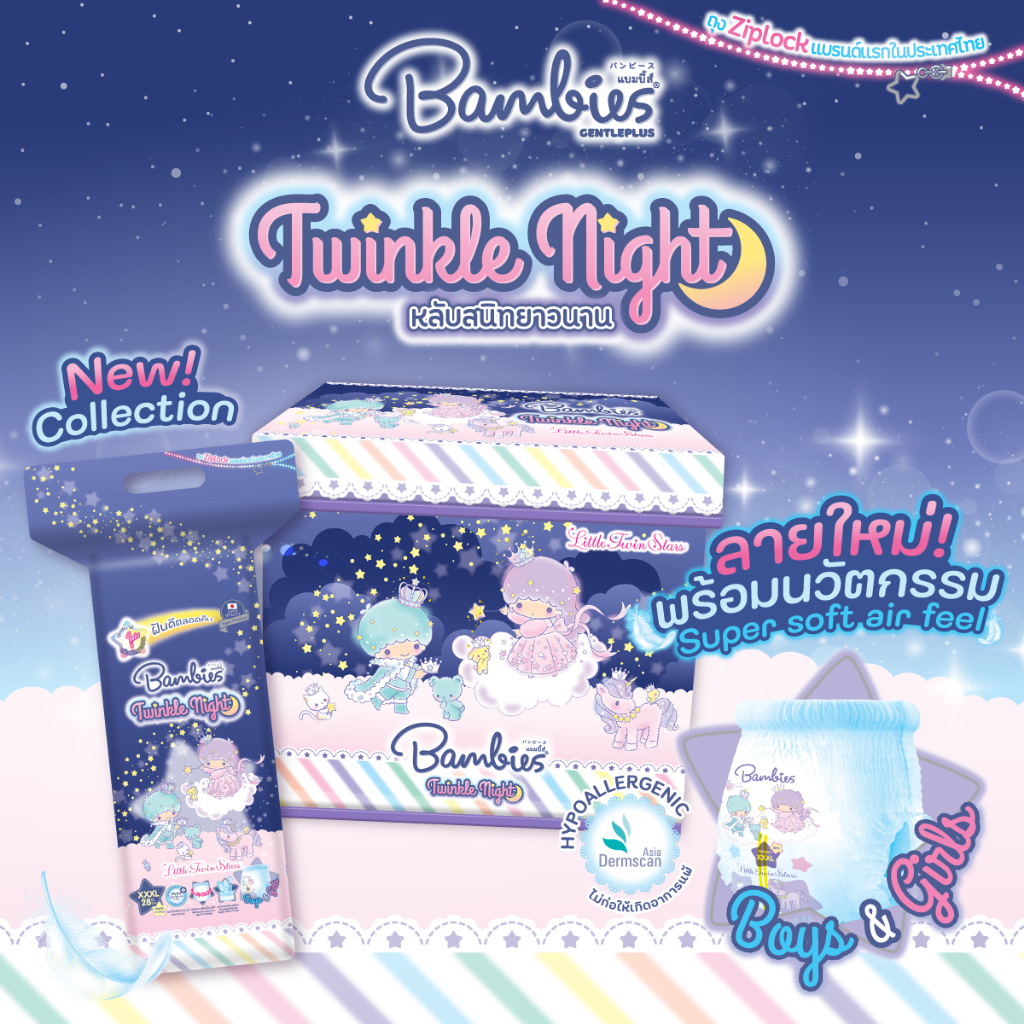 [ยกลัง ฟรี ! กล่อง Sanrio] ผ้าอ้อมกางเกง สำหรับกลางคืน รุ่น Twinkle Night เลือกไซส์ได้ x3