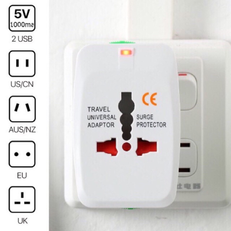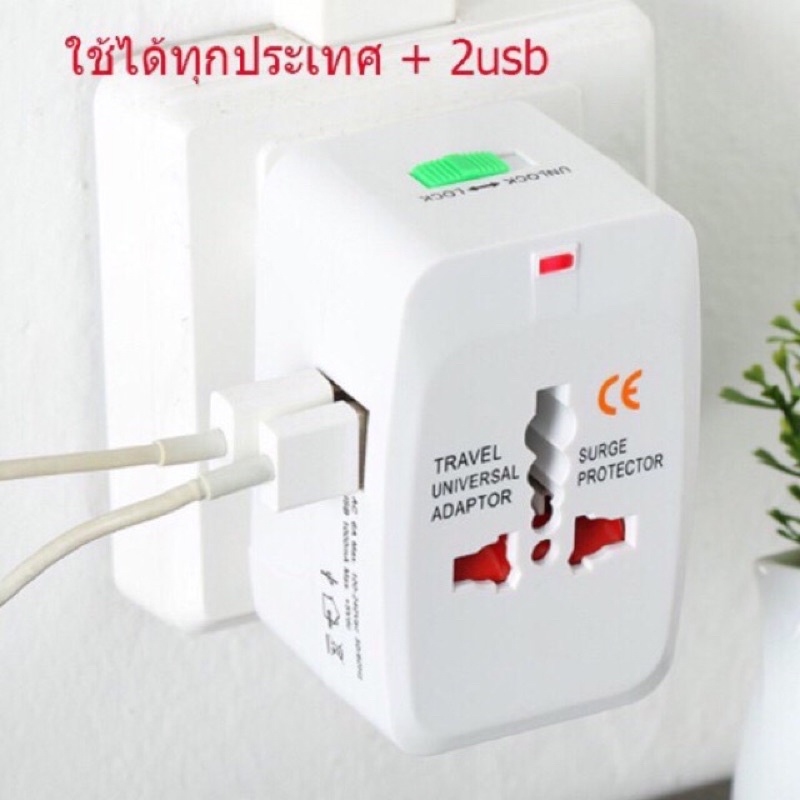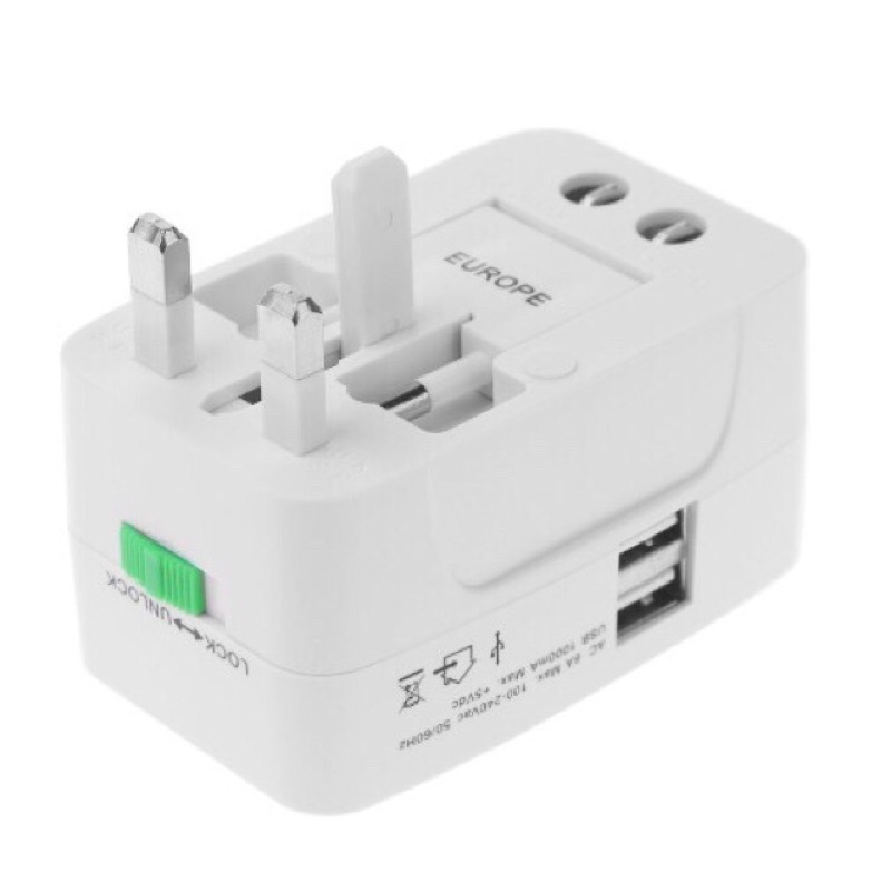 Universal Travel 2USB Adaptor ALL IN ONEหัวแปลงปลั๊กทั้วโลก สำหรับนักเดินทาง (สีขาว)