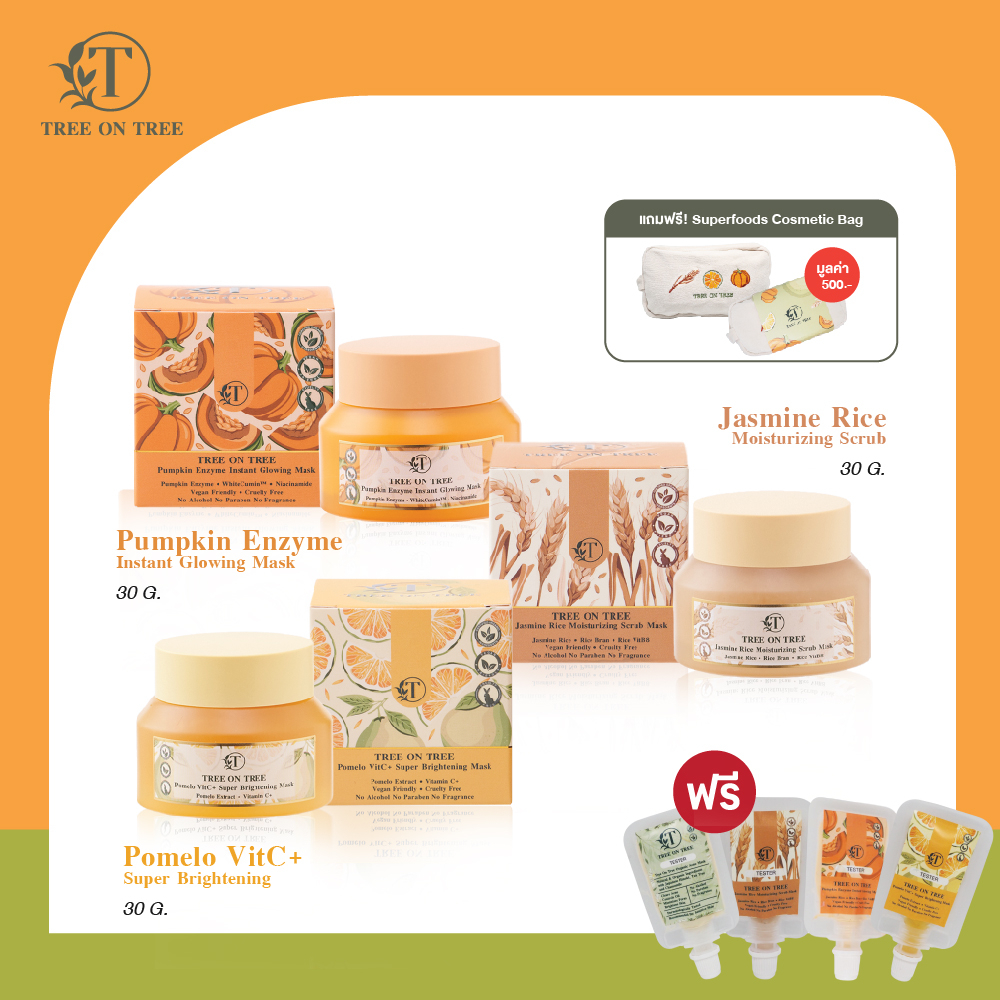 TREE ON TREE SUPERFOOD TRIO SET 30G. เซตมาส์กเพื่อผิวกระจ่างใส (ไซส์ใหญ่สุดคุ้ม)