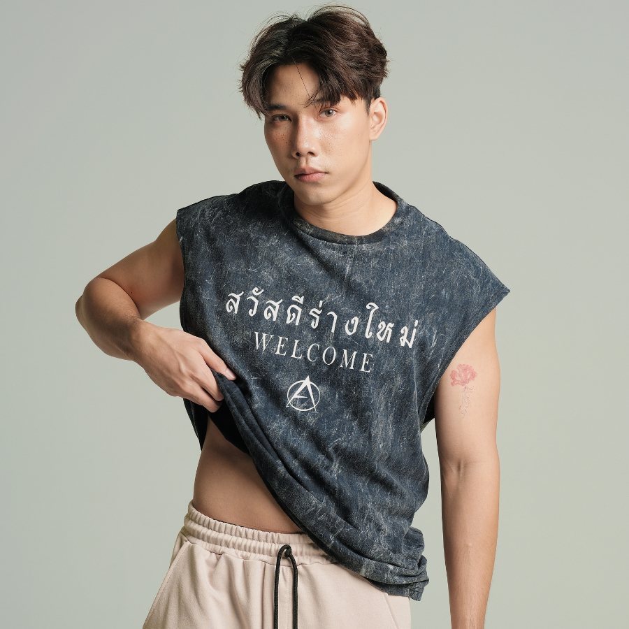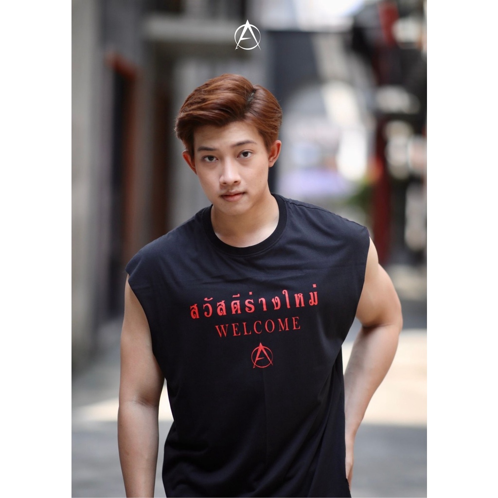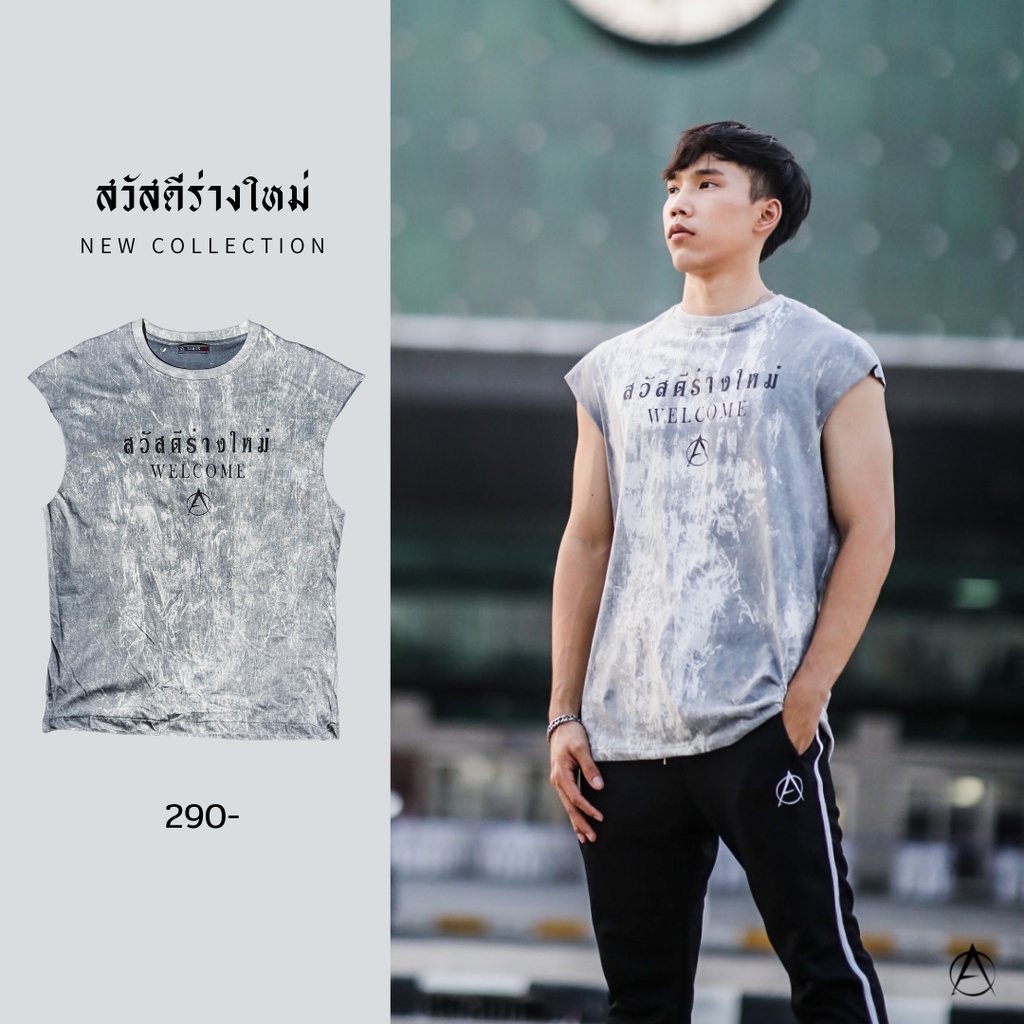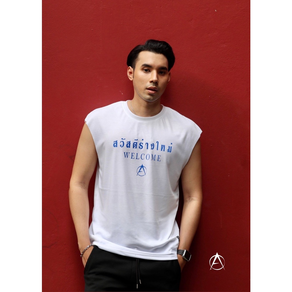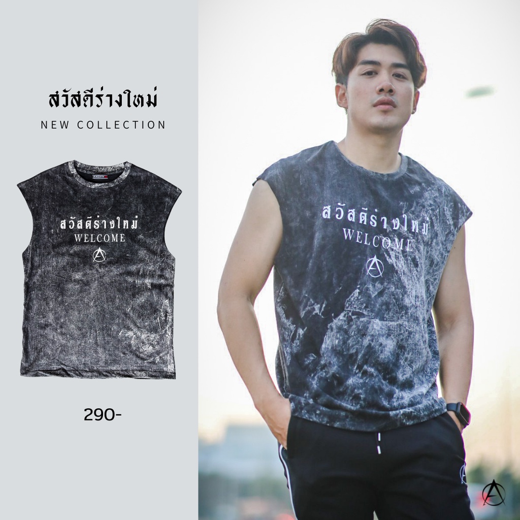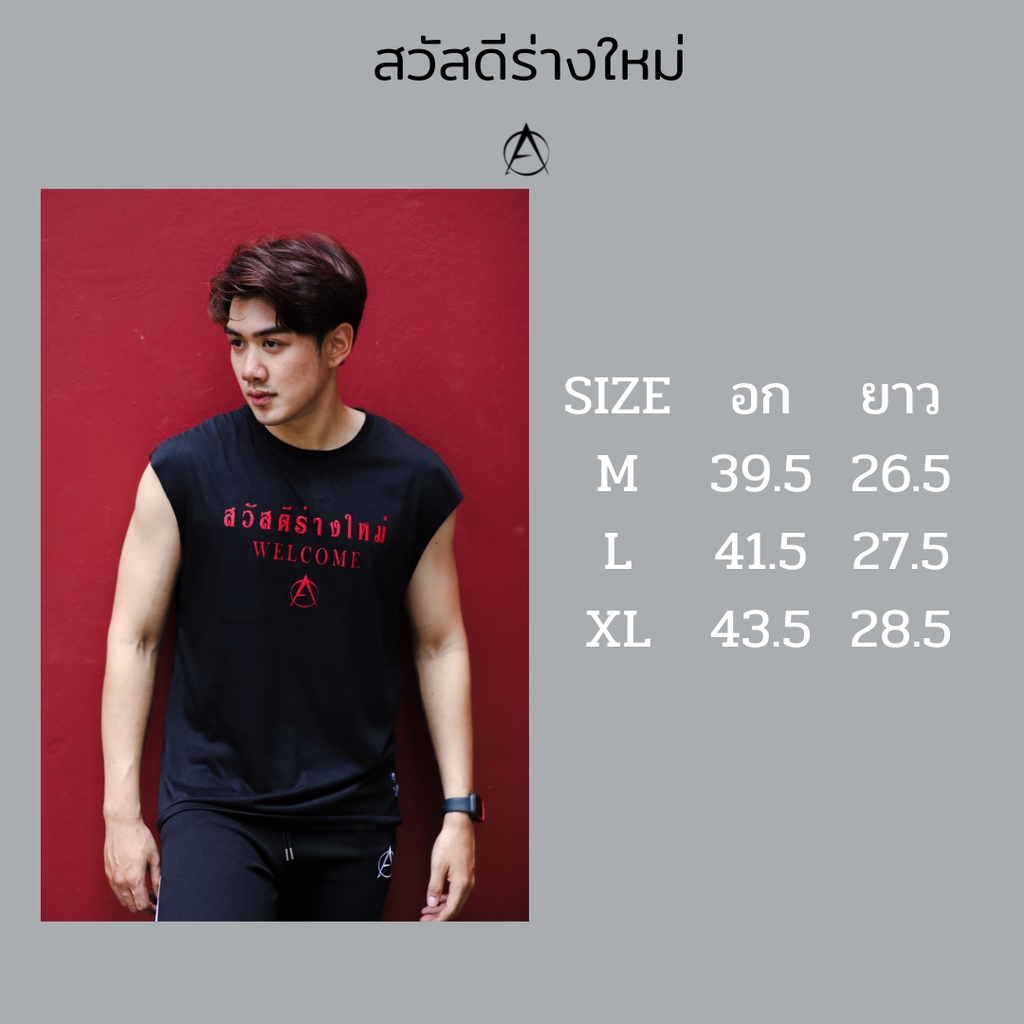 เสื้อแขนกุดทรงเกาหลีลาย สวัสดีร่างใหม่ ใส่ออกกำลังกาย ระบายอากาศดี