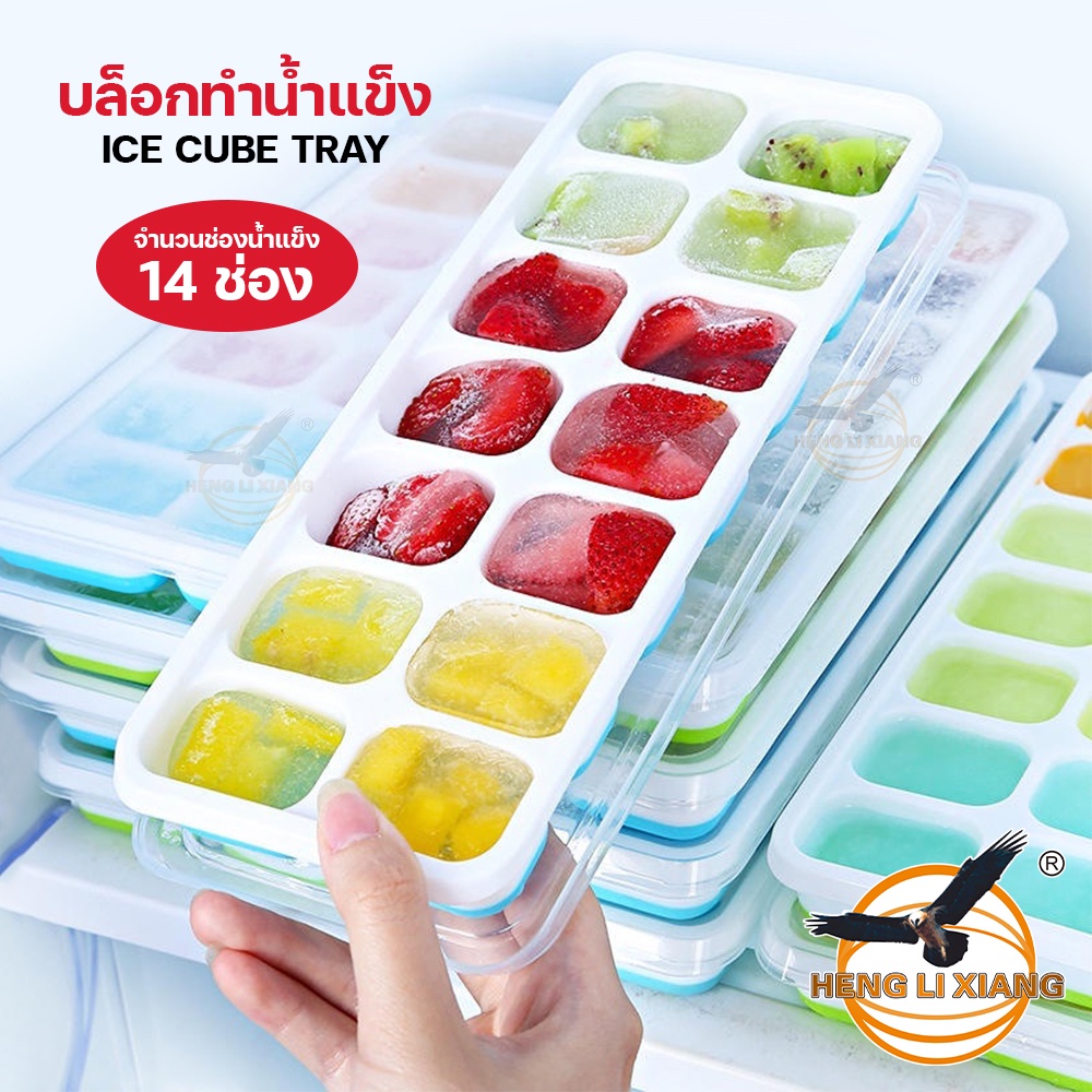 แม่พิมพ์น้ำแข็ง บล็อกทำก้อน Ice Maker ถาดน้ำแข็ง พิมพ์ซิลิโคน 14 ช่อง ฟู้ดเกรด Food Grade พร้อมฝาปิด
