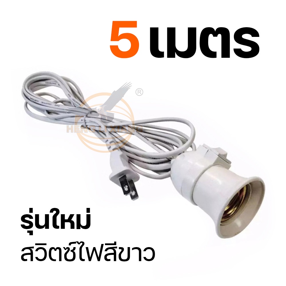 ขั้วหลอดไฟ E27 มีสวิตซ์เปิด-ปิด พร้อมสายไฟมีปลั๊กเสียบ ยาว 5 และ 10 เมตร สายสีขาว ขั้วสายไฟ