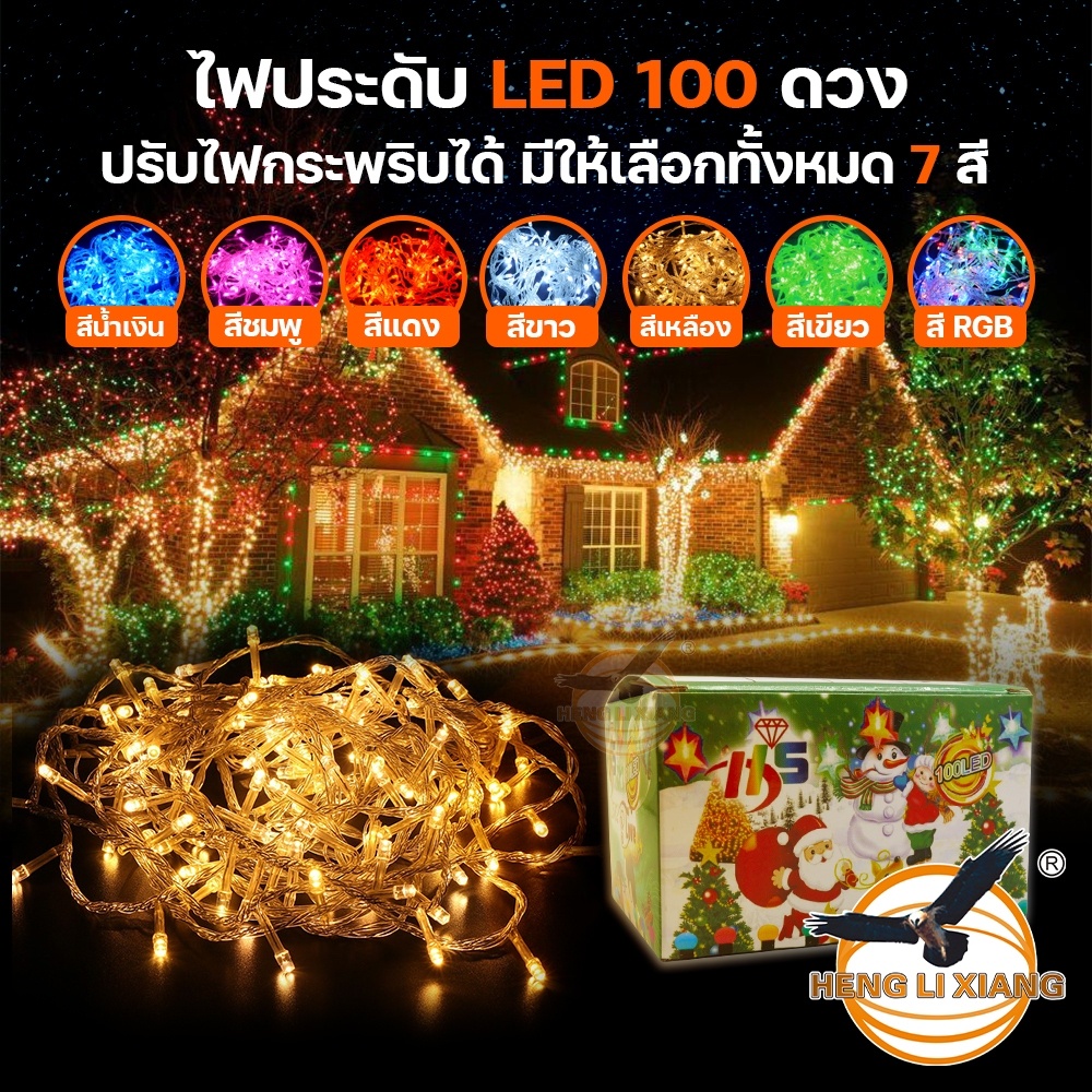 ไฟประดั บแตกแต่ง ปีใหม่ วันเกิด งานเลี้ยง คริสต์มาส ไฟแต่งห้อง หลอด 100 LED มีหลายสีให้เลือก กันฝน