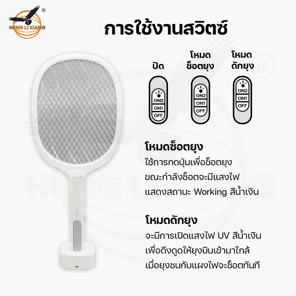 ไม้ตียุ งไฟฟ้า ช็อตแรง 3000V Mosquito Swatter ไม้ช็อตยุง แมลงวัน ทีดักแมลง เครื่องดักและกำจัด ST