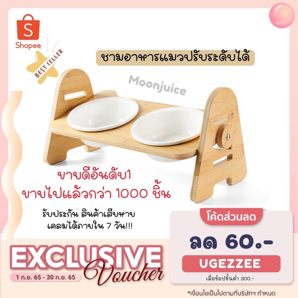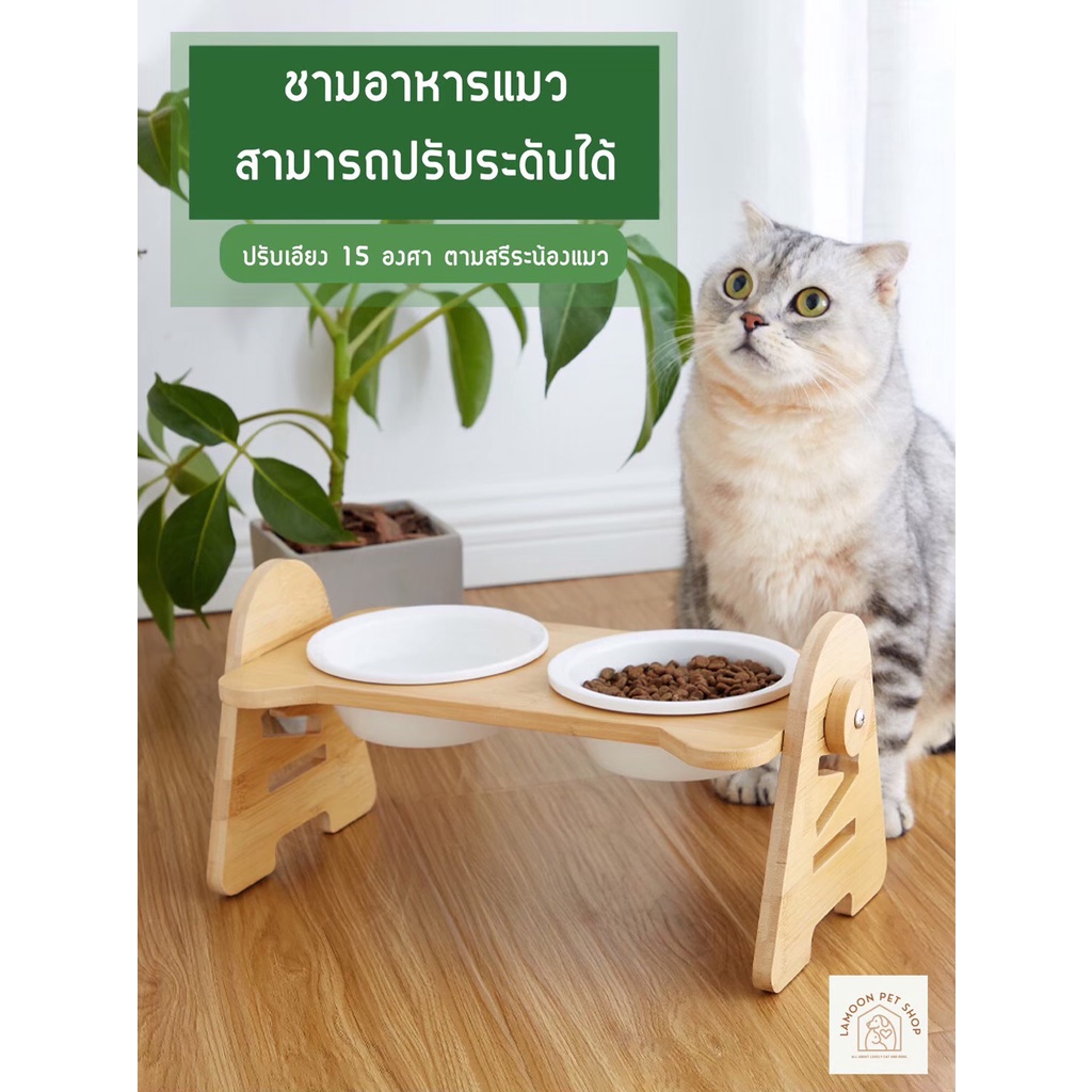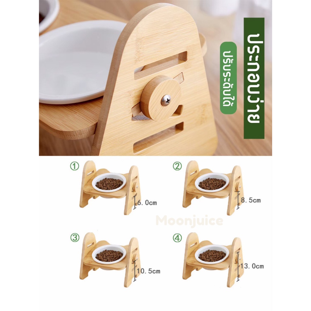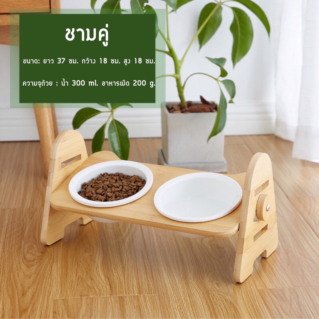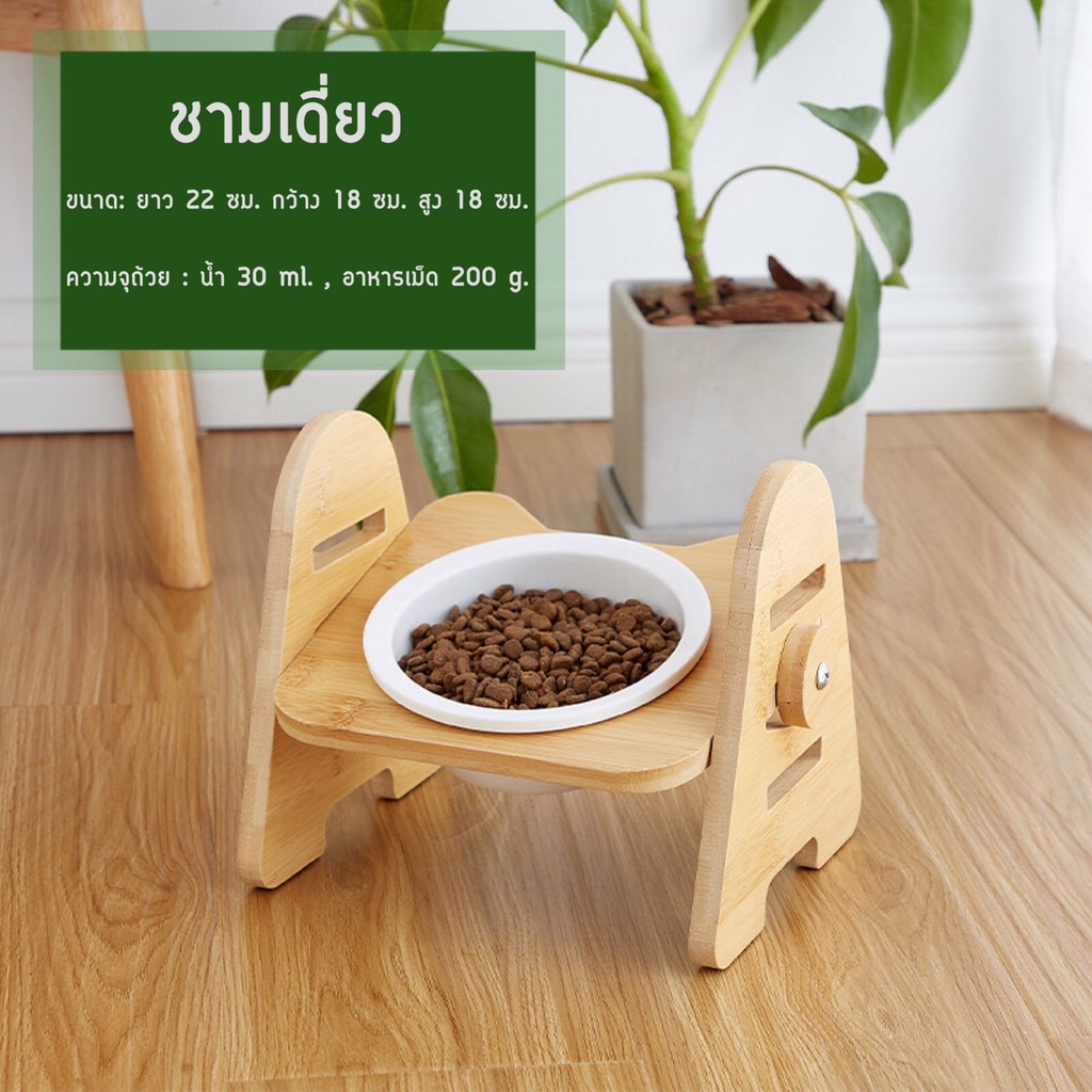 พร้อมส่ง✔🔥 ชามอาหารแมวเซรามิก มีฐานไม้รองชาม 1-2-3หลุม ปรับระดับได้