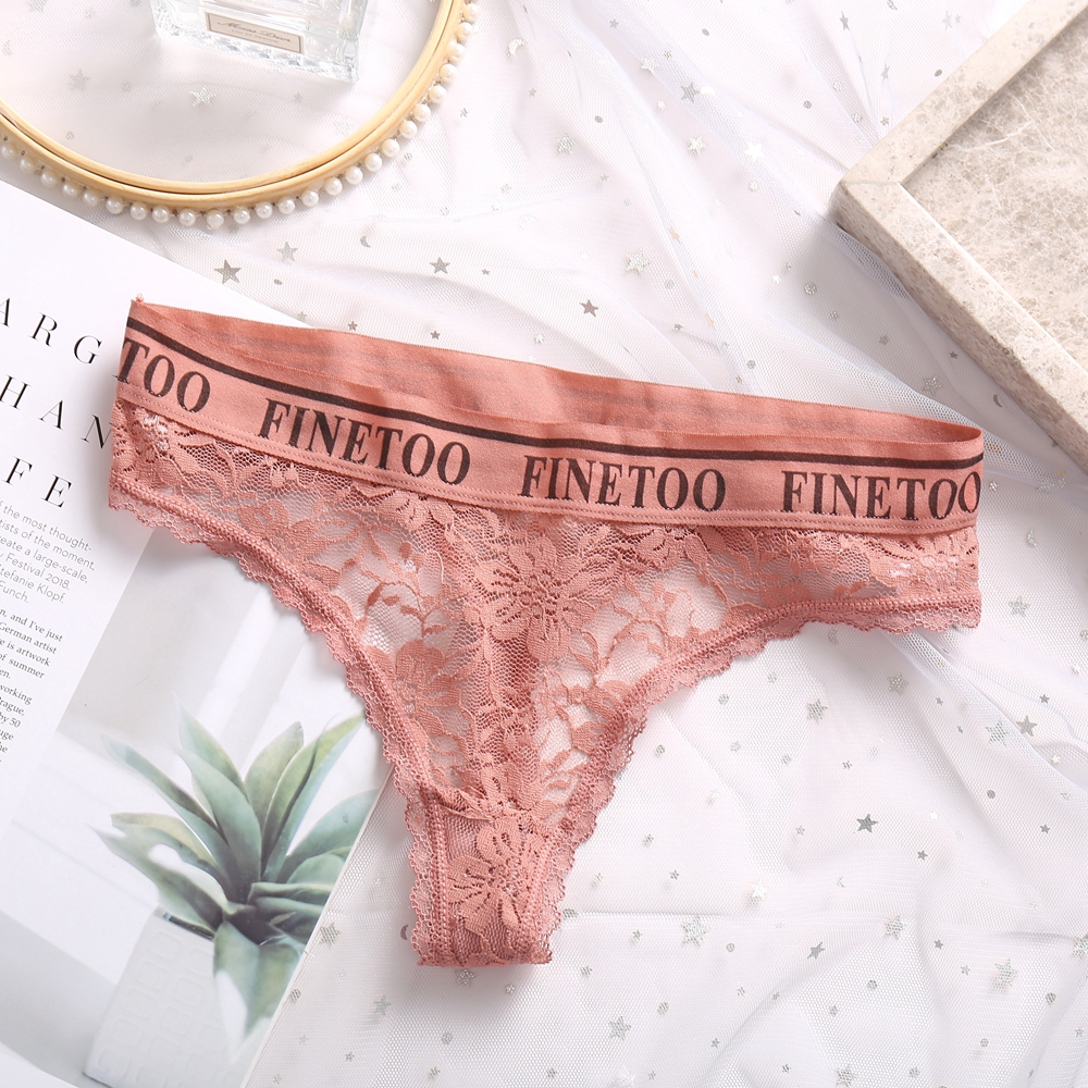 Finetoo กางเกงชั้นในจีสตริง ผ้าลูกไม้ สําหรับผู้หญิง
