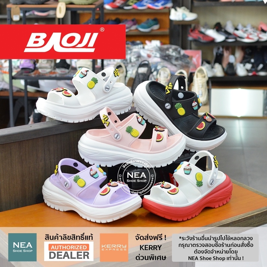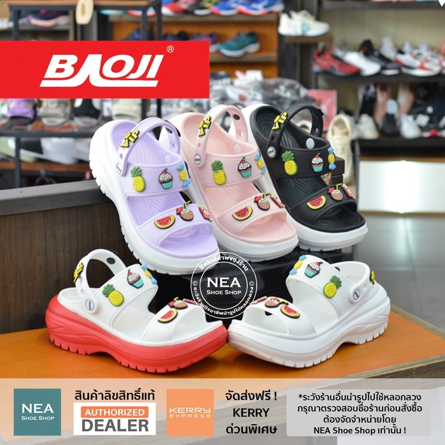[ลิขสิทธิ์แท้ ผ่อน0%] Baoji BO37-117 Clog Slingback - Summer Days [W] NEA รองเท้า แตะ เสริมส้น บาโอจิ แท้