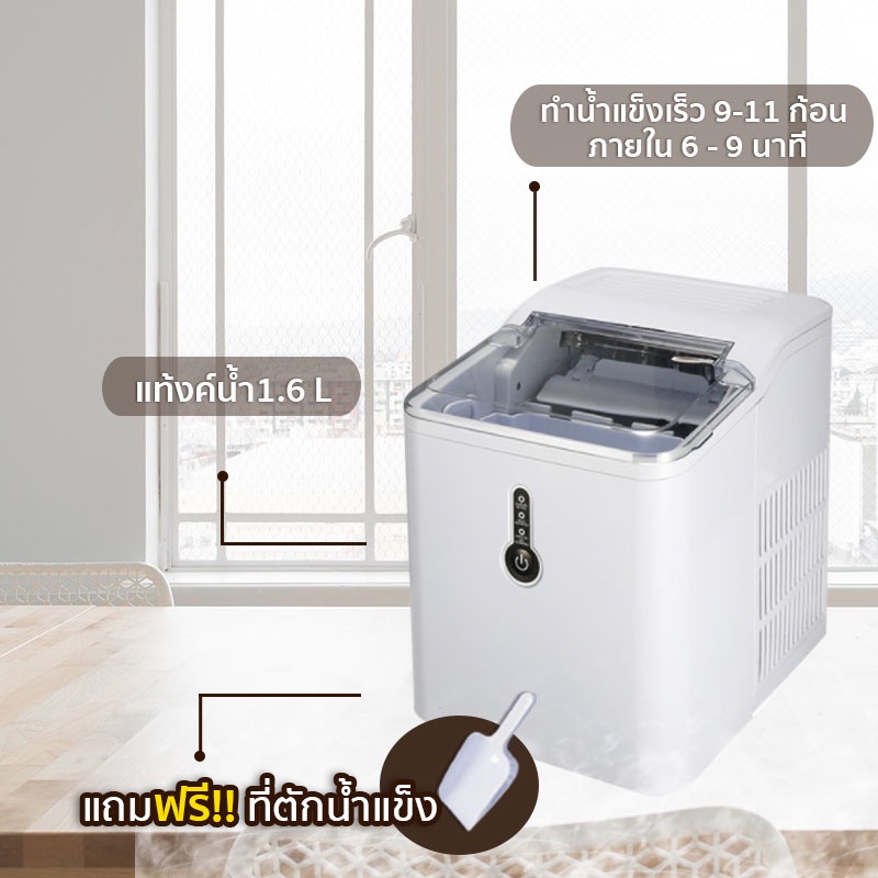 GENNEW Ice maker เครื่องทำน้ำแข็ง ทำน้ำแข็งใน 6-9 นาที แท้งค์น้ำ 1.6L เก็บน้ำแข็งได้ 60 แถมฟรีที่ตักน้ำ GNIM-12