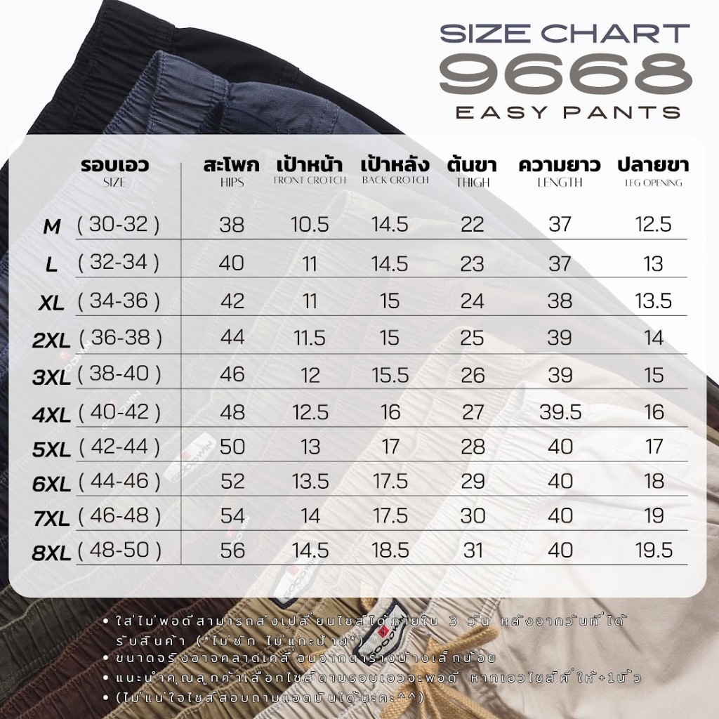⚡GW⚡(M-8XL) 9668 กางเกงขายาว ผู้ชาย ผ้ายืด ทรงขาเต่อ เอวยืด มีเชือกผูก ยาว 37-39.5 นิ้ว ไซส์30-48 Goodwin Brand